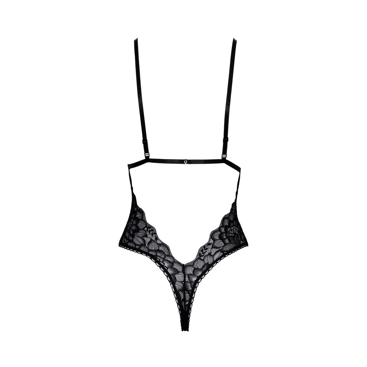 Elegante body di kissable completamente realizzato in pregiato pizzo nero. Morbido ed elastico su tutto il perimetro per il massimo comfort. Stile seducente con coppe morbide e fasce elastiche per il décolleté, oltre a un fiocco in raso sul davanti che esalta la vita. Taglio extra alto per mettere in risalto il fondo e le gambe. Chiusura con gancio sul retro. Le cinghie sono regolabili.