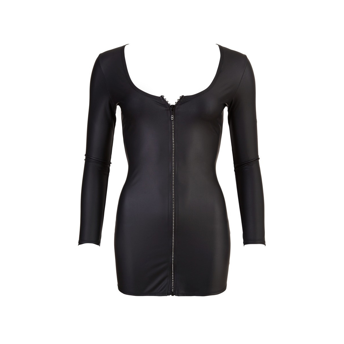 L'abito corto nero di Cottelli PARTY con maniche lunghe delizia con il suo taglio aderente che enfatizza le curve femminili in modo formoso ed eccitante, così come con la sua ampia scollatura e la scintillante zip glitter sul davanti.