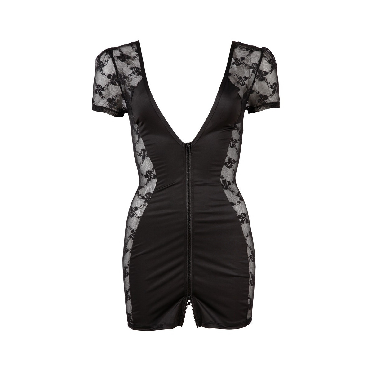 Abito intimo stretto e trasparente, di lato in pizzo delicato. Con maniche corte e una profonda scollatura davanti e dietro. Una cerniera a 2 vie sul davanti rende il look sexy perfetto.