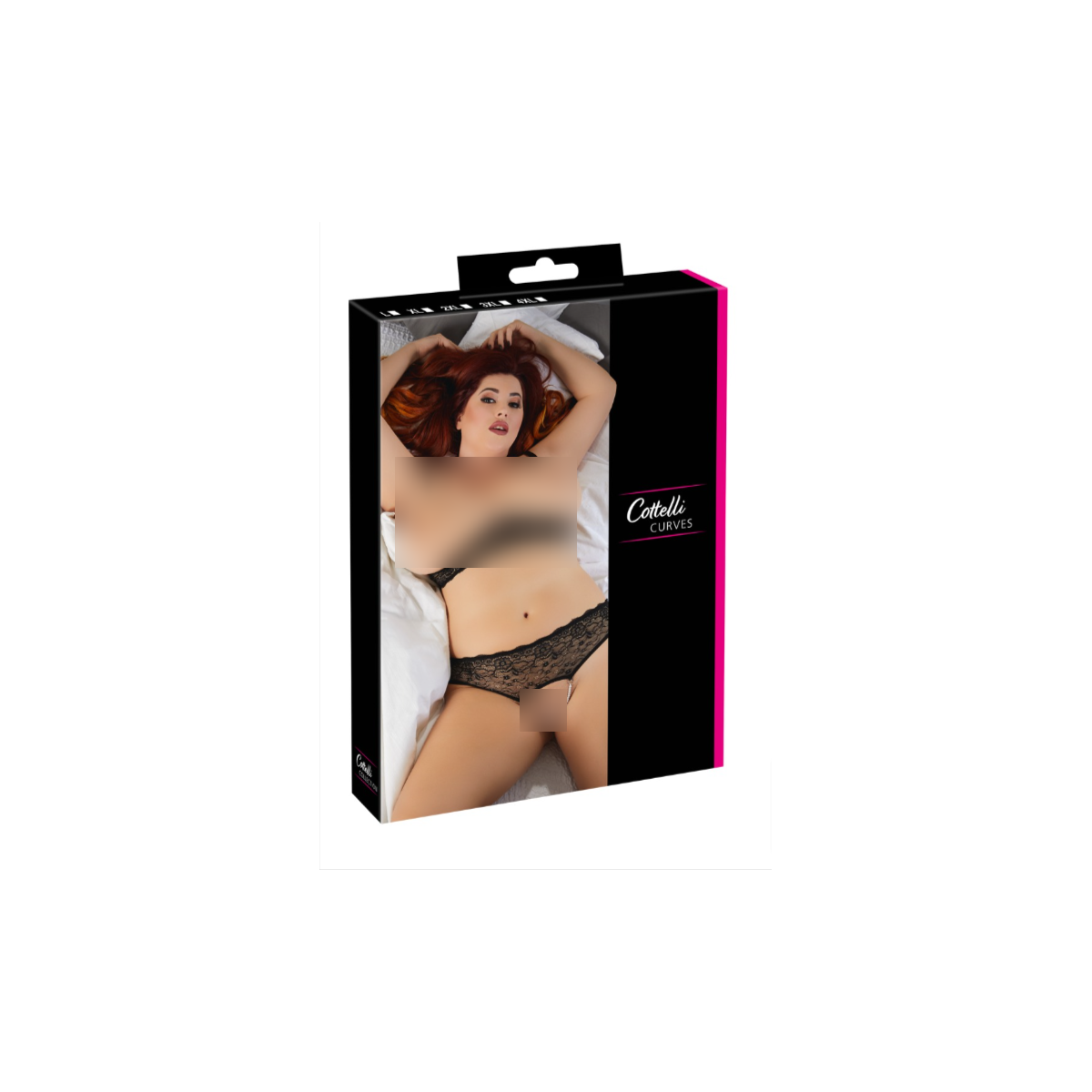 Cottelli Curves Pearl Set B - Completino, Intimo, Seno e Vagina Scoperti, Pizzo, Nero, Taglia 3XL
