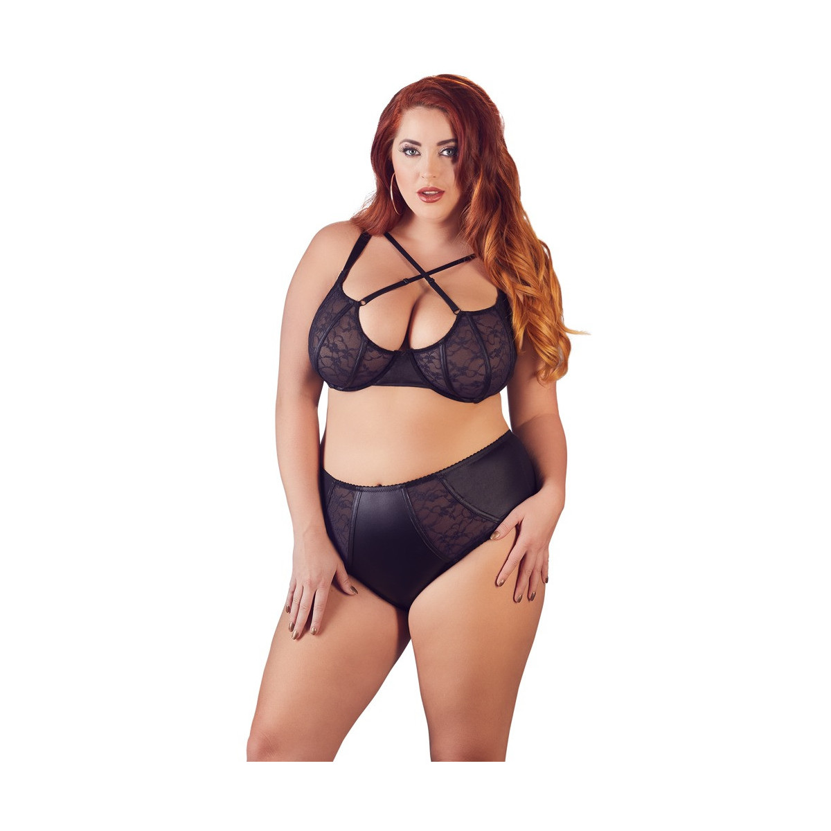 Cottelli Curves Underwired Bra Set 85E/L - Completino, Intimo, Pizzo, Elegante, Nero, Taglia 85E/L