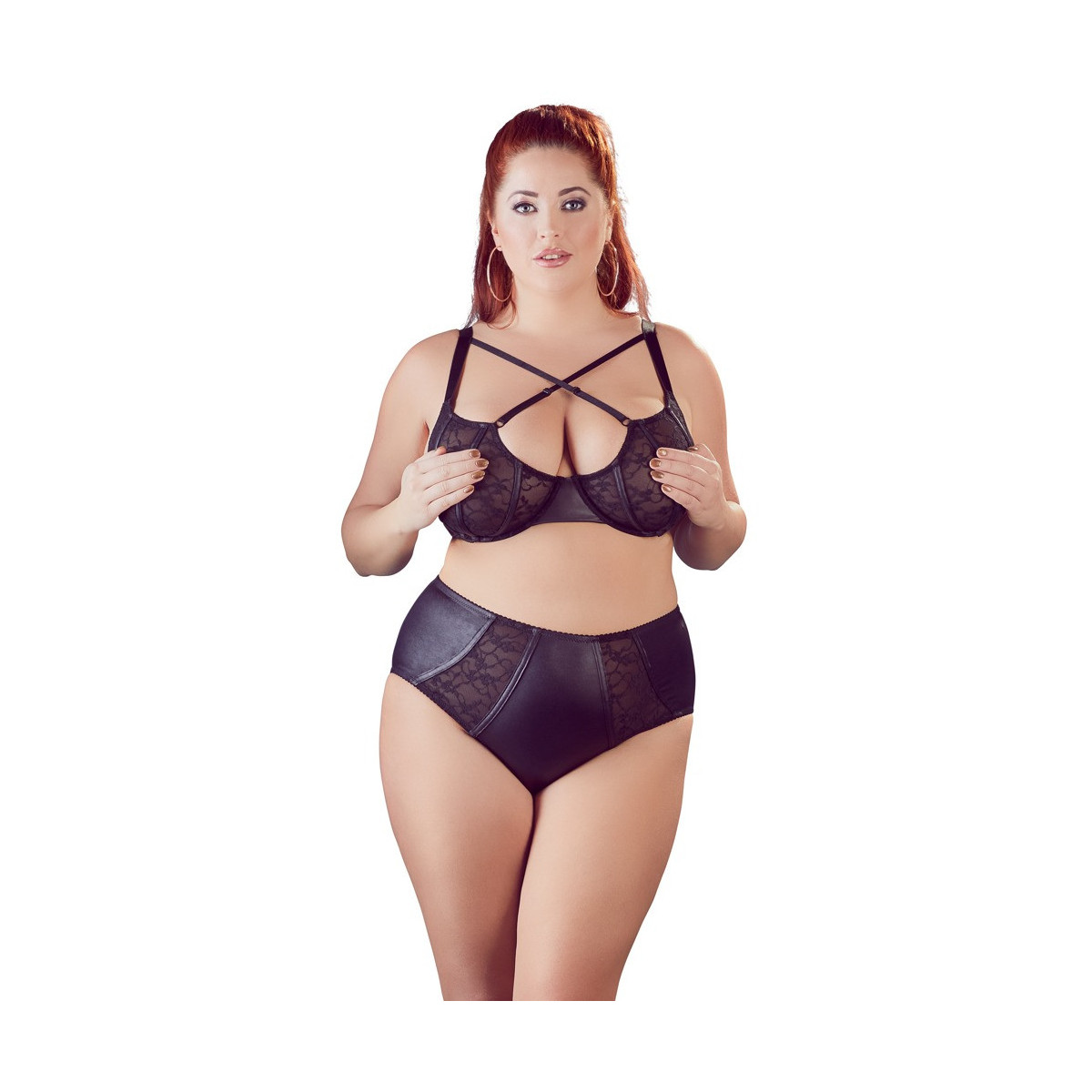 Cottelli Curves Underwired Bra Set 90F/XL - Completino, Intimo, Pizzo, Elegante, Nero, Taglia 90F/XL