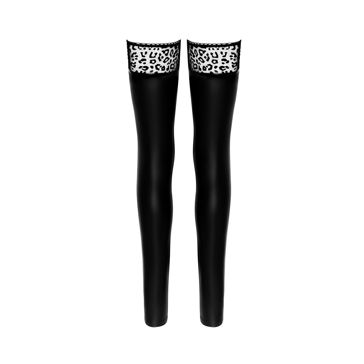 Noir Handmade Leo SB - Calze, Autoreggenti, Senza Piede, Nere, Lucide, Leopardate, Taglia S