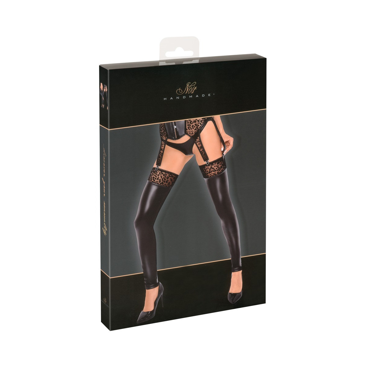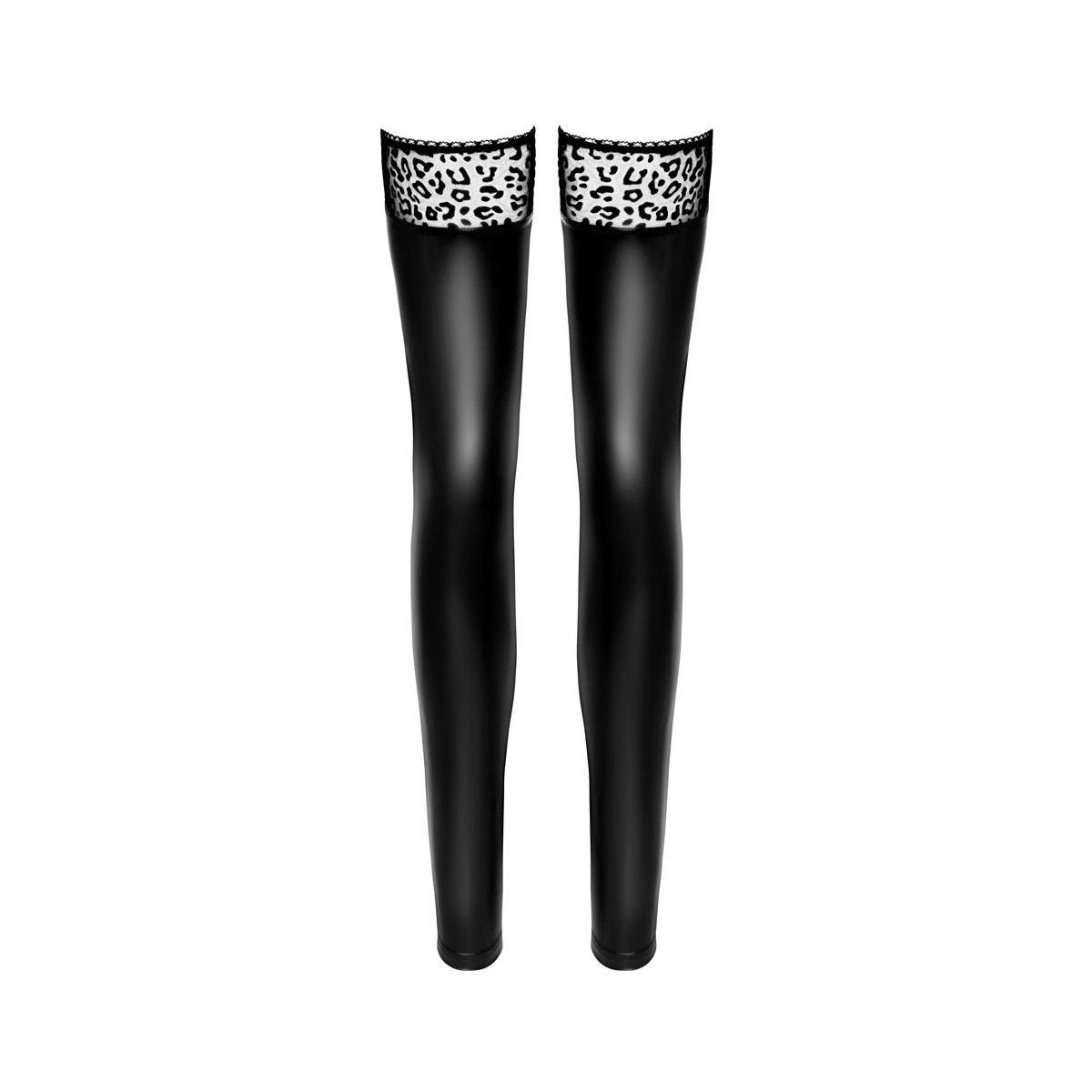 Noir Handmade Leo SB - Calze, Autoreggenti, Senza Piede, Nere, Lucide, Leopardate, Taglia XL