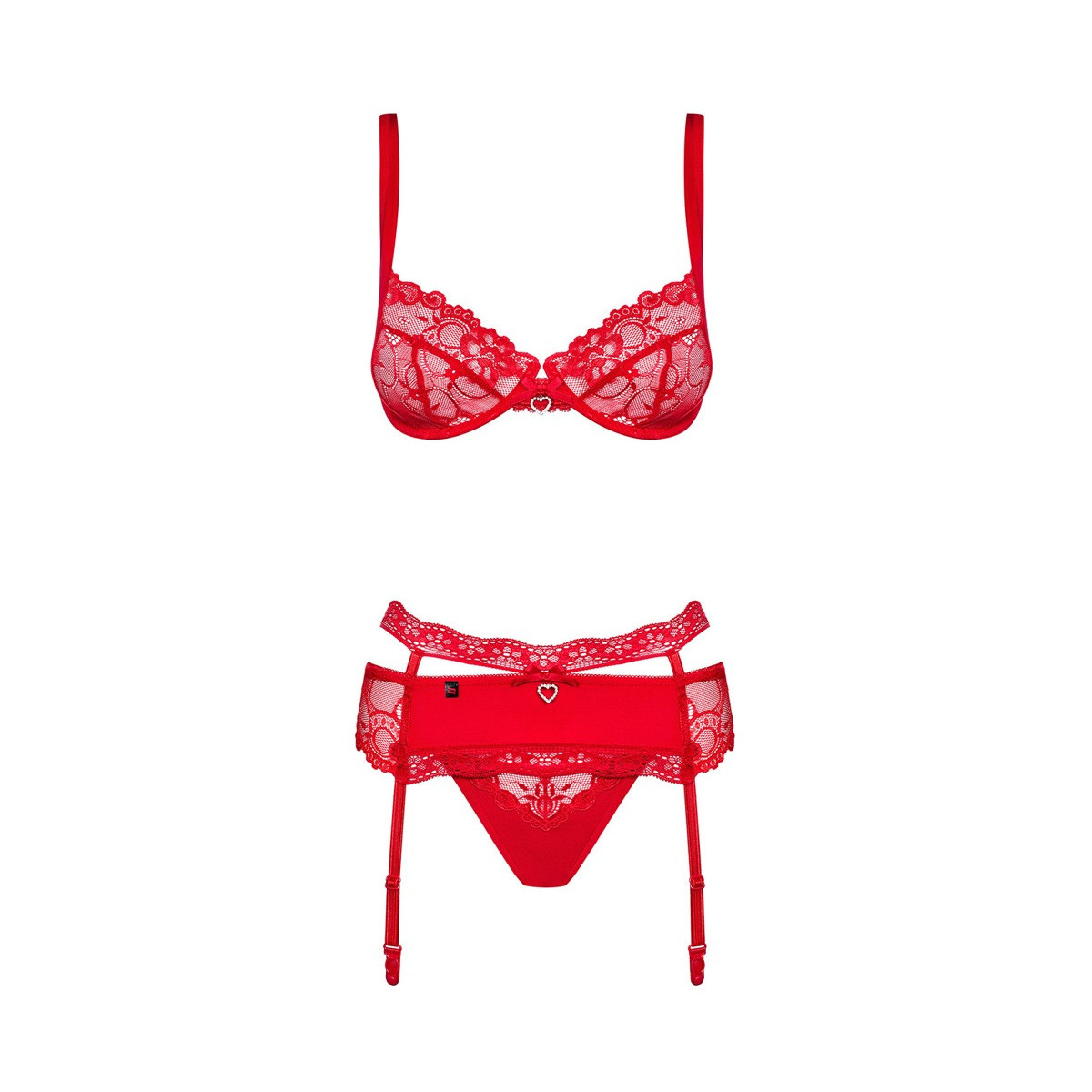 Obsessive Bra Set R - Completino, Intimo, Rosso, Pizzo, Taglia L-XL