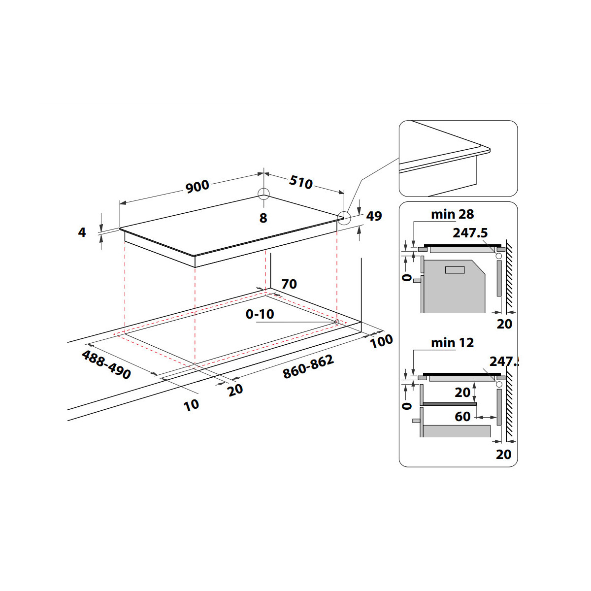 | Forma del piano cottura 4 | Rettangolare |