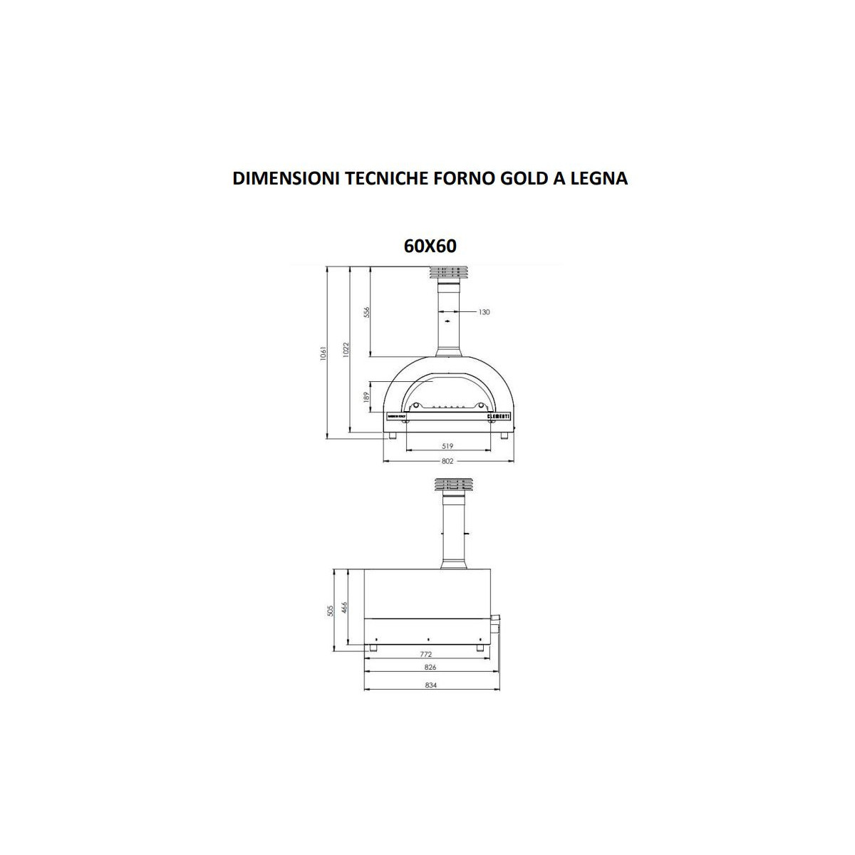 Il forno Gold a gas è disponibile nella versione base con i piedini d’appoggio oppure con carrello.