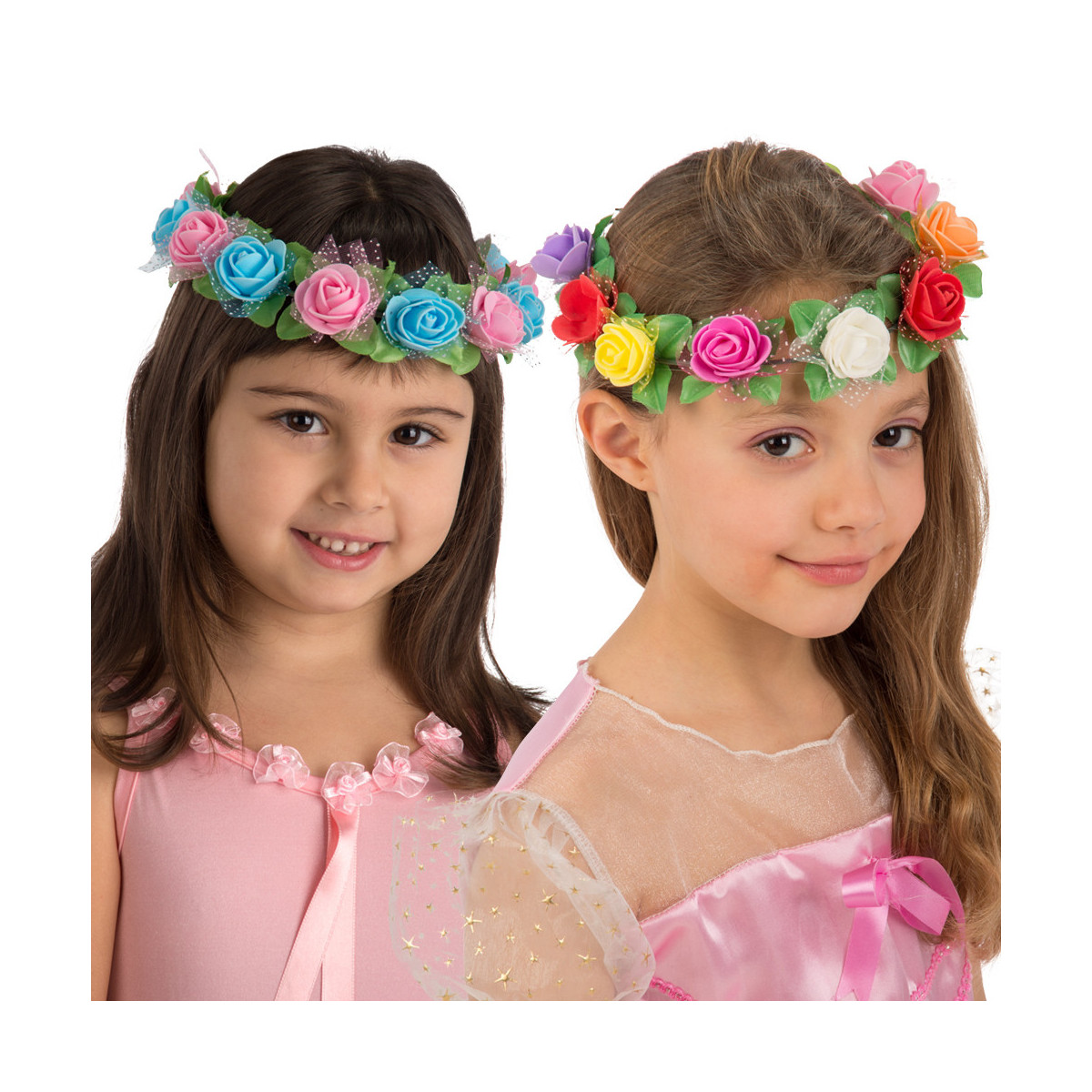 Coroncine per capelli di roselline in colori assortiti, ideali per acconciature di bambine chic e romantiche.