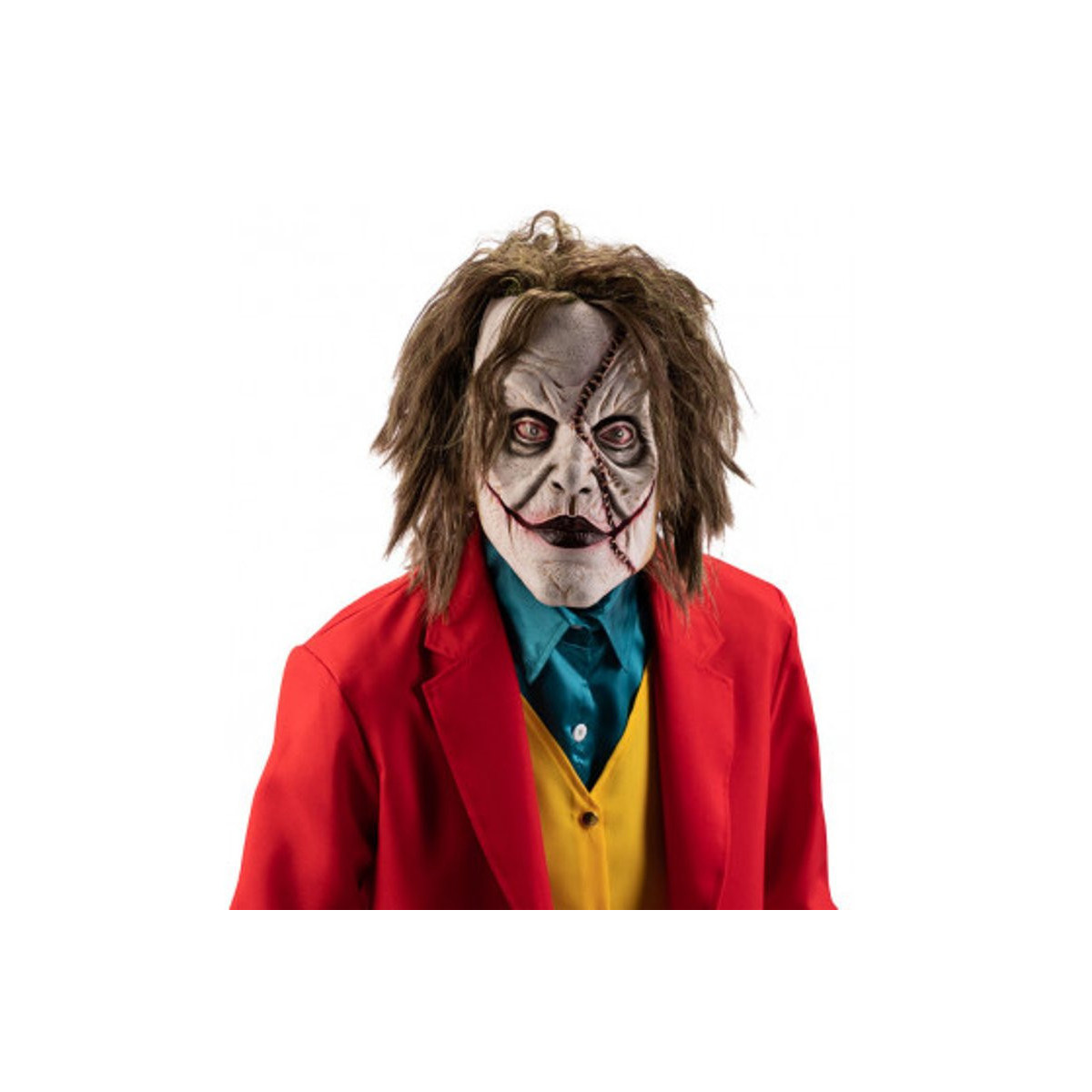 Maschera clown pazzo in lattice con capelli c/cavallotto