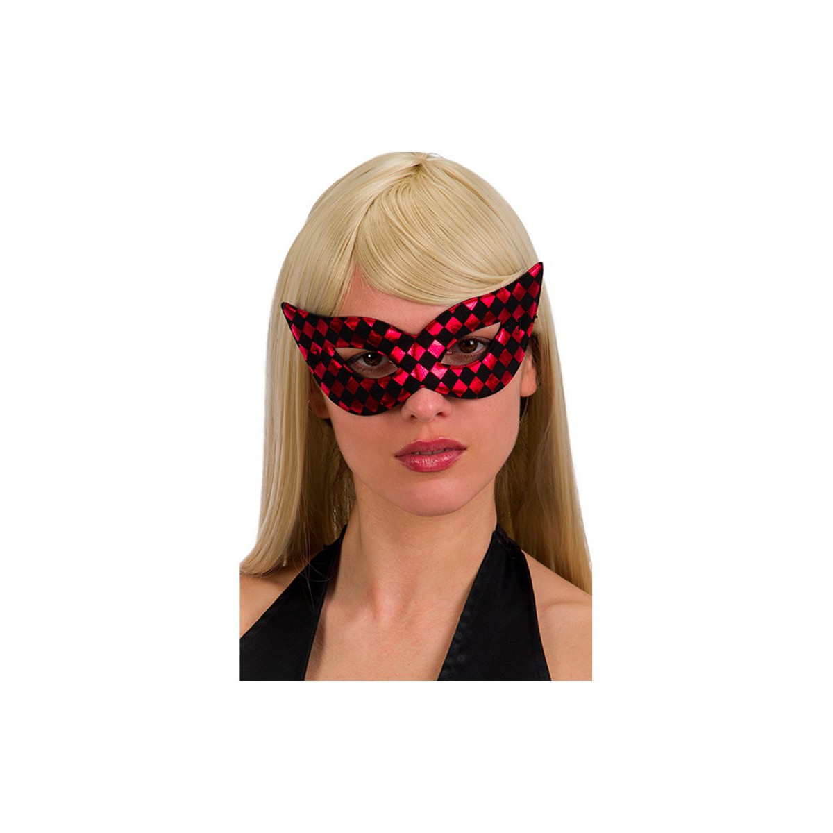 Maschera rossa in tessuto a scacchi in busta c/cav.