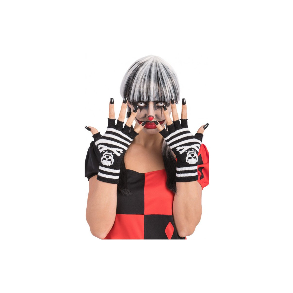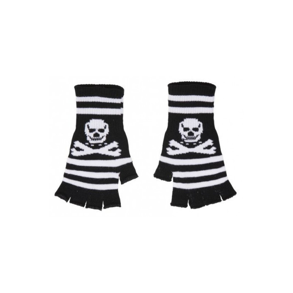 Guanti neri di lana senza dita con teschio l.cm.20 ca. in busta c/cav.