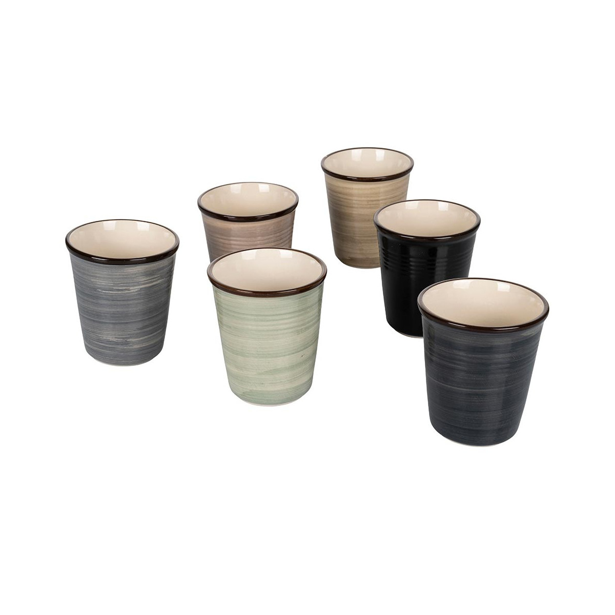 Set 6 bicchieri acqua in ceramica con bordino marrone
