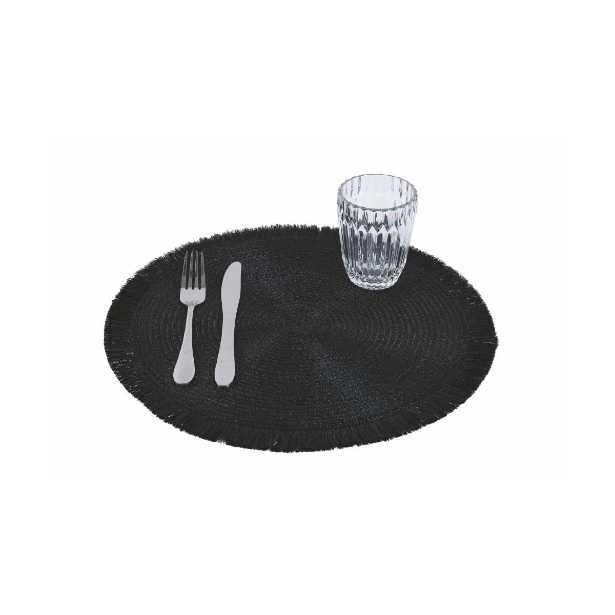 Set 6 Tovagliette nere in poliestere con frange