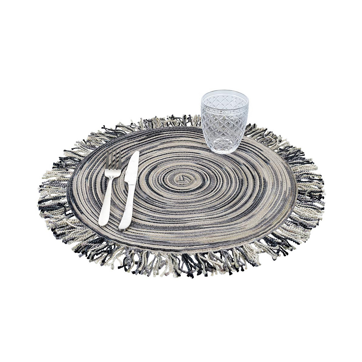 Villa D'Este Home Tivoli 'Shades of Stones', Set 6 Tovagliette Tonde con Frange