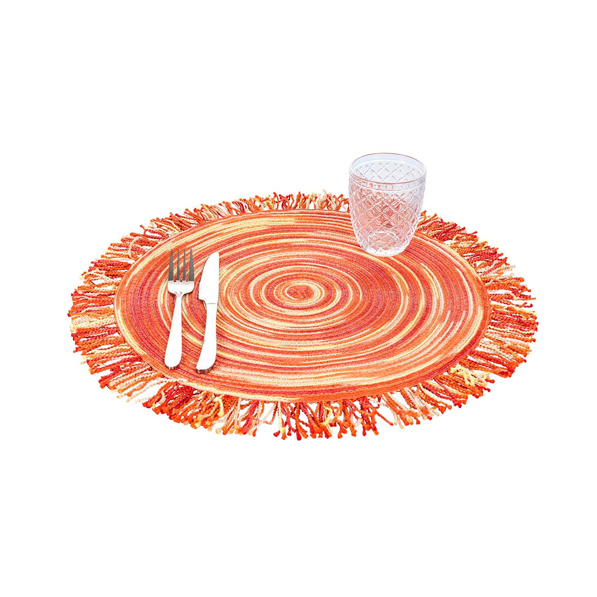 Villa D'Este Home Tivoli 'Shades of Sunset', Set 6 Tovagliette Tonde con Frange Assortite