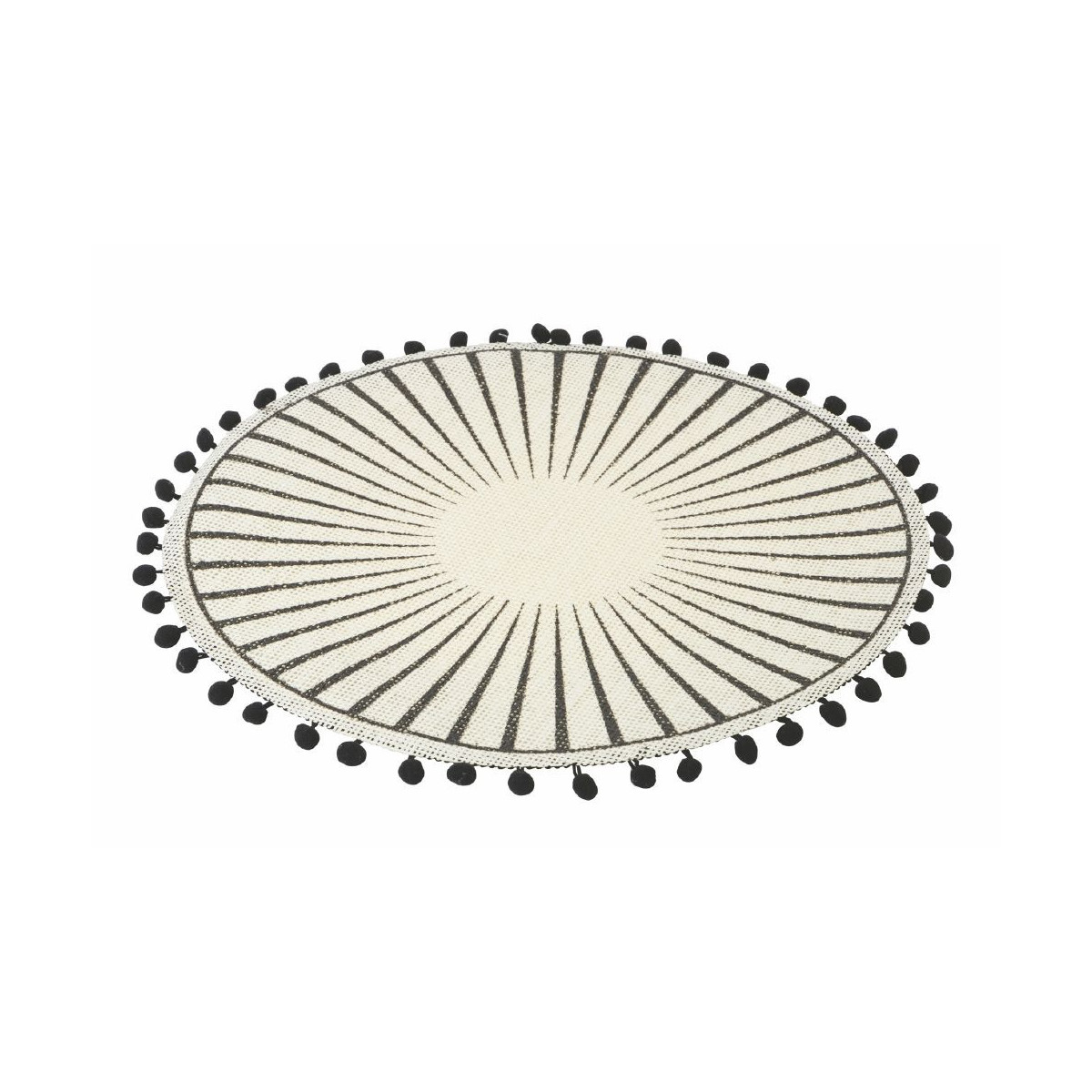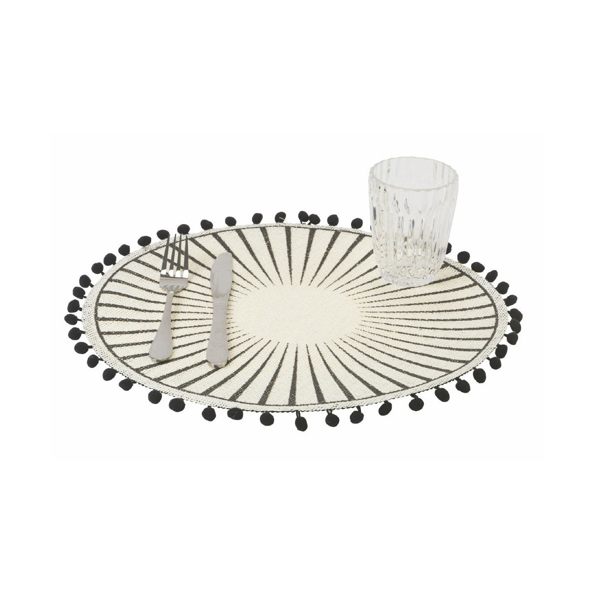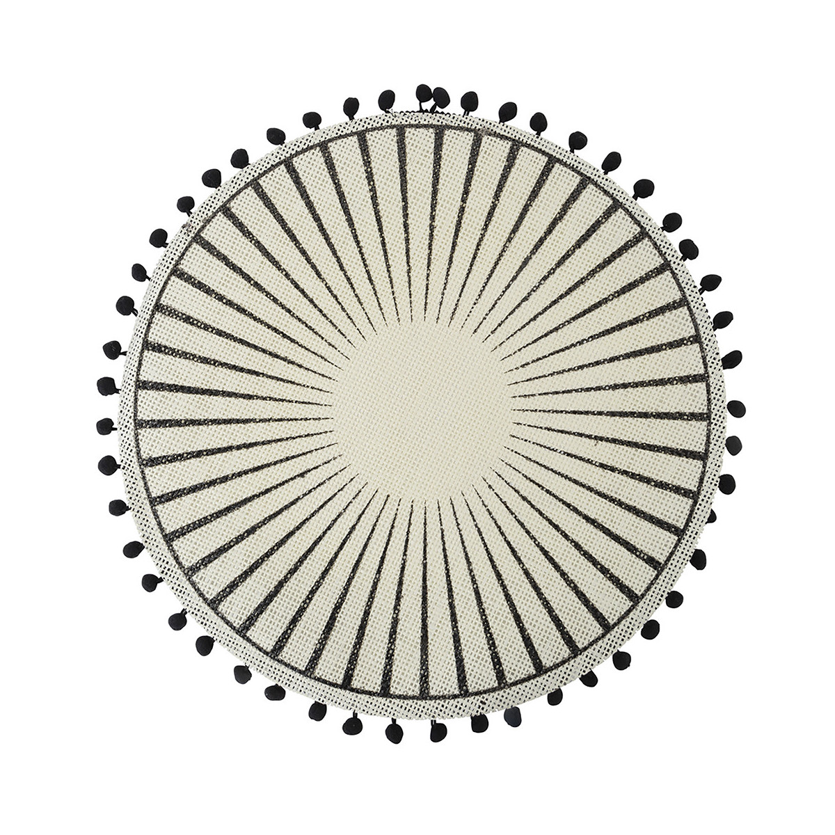 Villa D'Este Home Tivoli 'Black', Set 6 Tovagliette in Juta con Pon Pon Neri