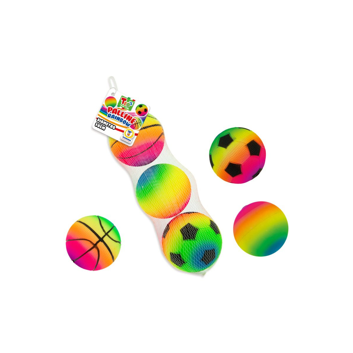 PALLINE PVC RAINBOW 3PZ IN RETE DIAM 10CM