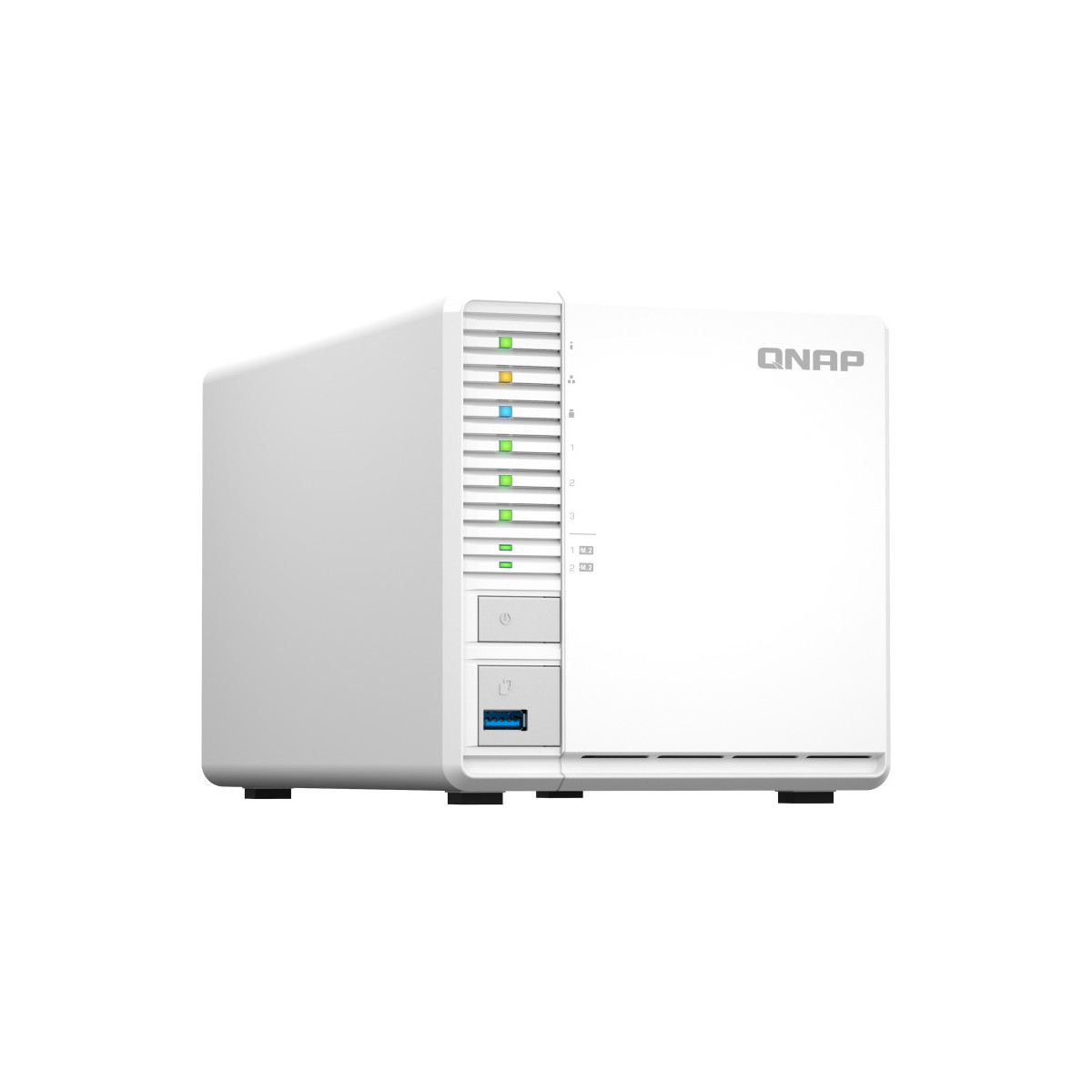 Il TS-364 a 3 baie non solo consente di sfruttare le prestazioni elevate e la protezione dei dati del RAID 5 utilizzando un numero minore di dischi, ma offre anche slot SSD M.2 e tiering automatico dell’archiviazione per ottenere prestazioni ottimali del sistema. Il TS-364 supporta fino a 16GB di RAM e dispone di una porta 2,5GbE per migliorare l’uso quotidiano ed eseguire macchine virtuali e container compatti. Gli utenti domestici possono inoltre sfruttare le funzionalità del portale multimediale del TS-364 per eseguire lo streaming e la condivisione di foto, musica e video su tutti i dispositivi.