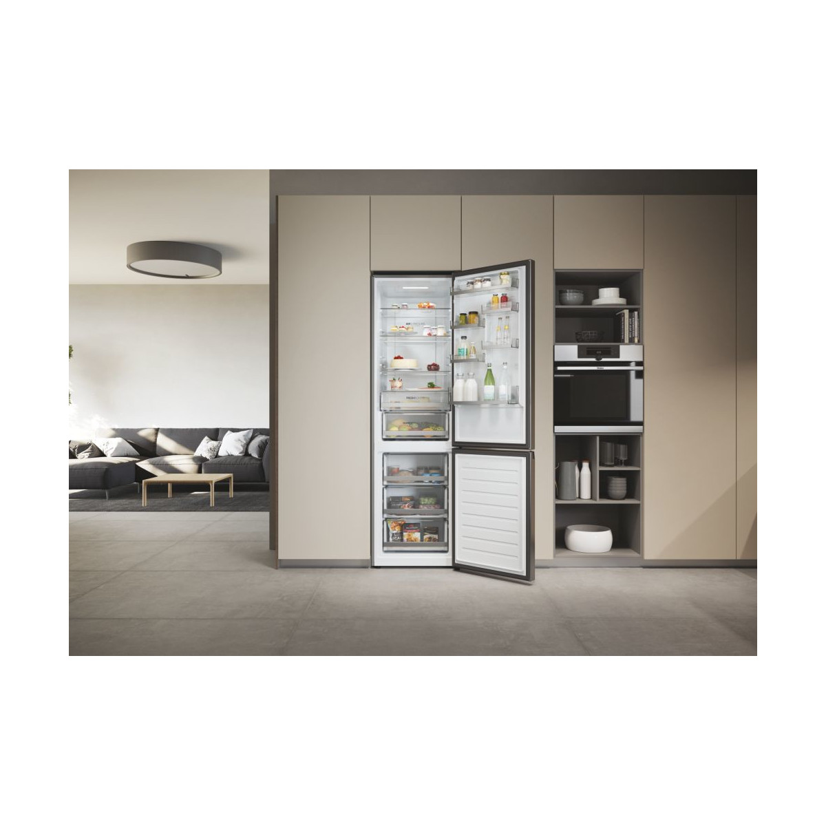 Haier 2D 60 Serie 3 HDW3620DNPK. Capacità netta totale: 377 L. Cerniera porta: Destra, Tipo di display: LED. Classe climatica: Starfish, Emissione acustica: 36 dB. Capacità netta frigorifero: 258 L, No Frost (frigorifero), Sistema Multi-Airflow (frigorifero), Luce interna. Capacità netta congelatore: 119 L, Capacità di congelamento: 8 kg/24h, No Frost (congelatore). Compartimento zona fresca. Classe efficienza energetica: D, Consumo energetico annuo: 211 kWh