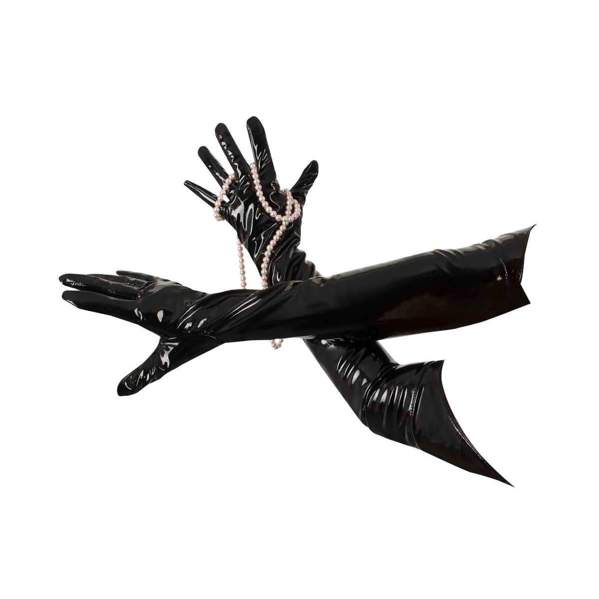 Guanti extra lunghi di Black Level completamente in vernice nera lucida. Arrivano quasi alle spalle e sono tagliati a punta sui polsini per una vestibilità comoda.