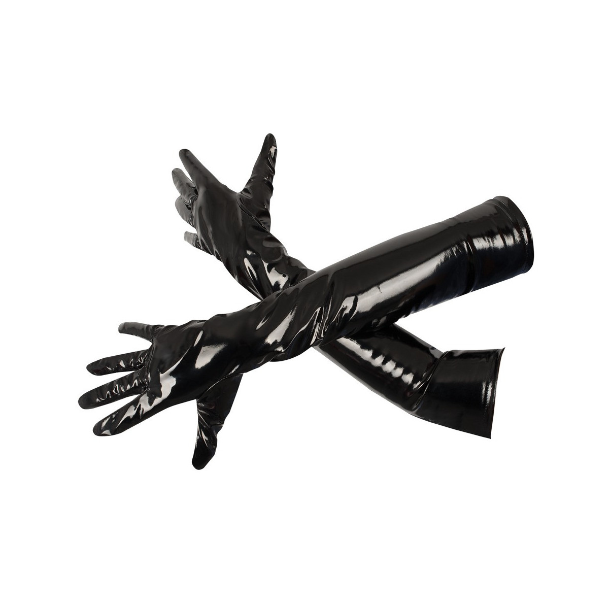 Guanti lunghi di Black Level in vernice nera lucida. Con inserti elasticizzati per una vestibilità perfetta, vicina alla pelle ma confortevole.