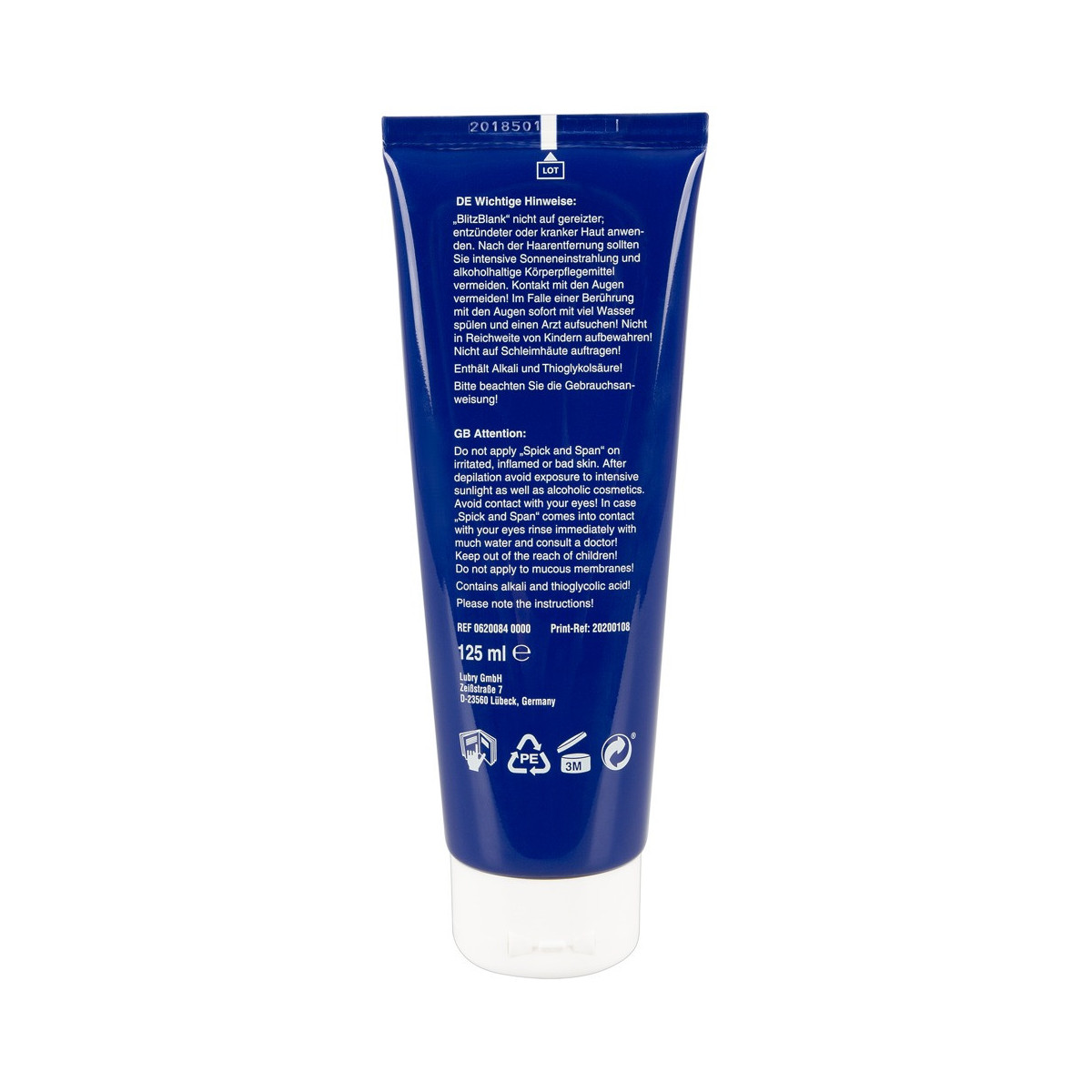 Con la crema di depilazione BlitzBlank rimuovete i fastidiosi peli in modo rapido, comodo e meravigliosamente delicato. Vasetto inclusa spatola. 125 ml.