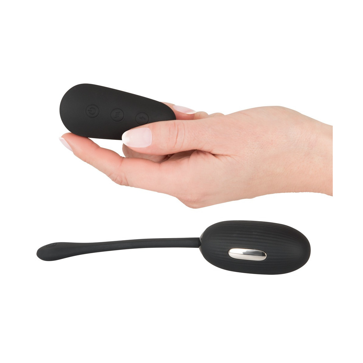 Vibro-uovo ricaricabile con 3 intensità di corrente di stimolazione e 7 modalità di vibrazione - tutto in un solo giocattolo e tutto separatamente con il telecomando ricaricabile senza fili comodamente controllato al tocco di un pulsante. Anche dal partner per sorprendenti momenti di piacere ed eccitanti giochi di controllo. Il caratteristico vibro-uovo scanalato con cinturino elastico di ritorno è fatto di materiale siliconico morbido tutto intorno e fornisce una sensazione di pelle molto piacevole quando viene indossato e giocato. Con il suo peso di 63 g, il Vibro Egg è particolarmente adatto ai principianti nell'allenamento del pavimento pelvico. Poiché il Vibro-Egg è impermeabile, niente impedisce il piacere del formicolio e l'allenamento anche sotto l'acqua (nella vasca da bagno o nella doccia). Ricaricabile - cavo di ricarica USB incluso. Borsa di stoccaggio di alta qualità inclusa.