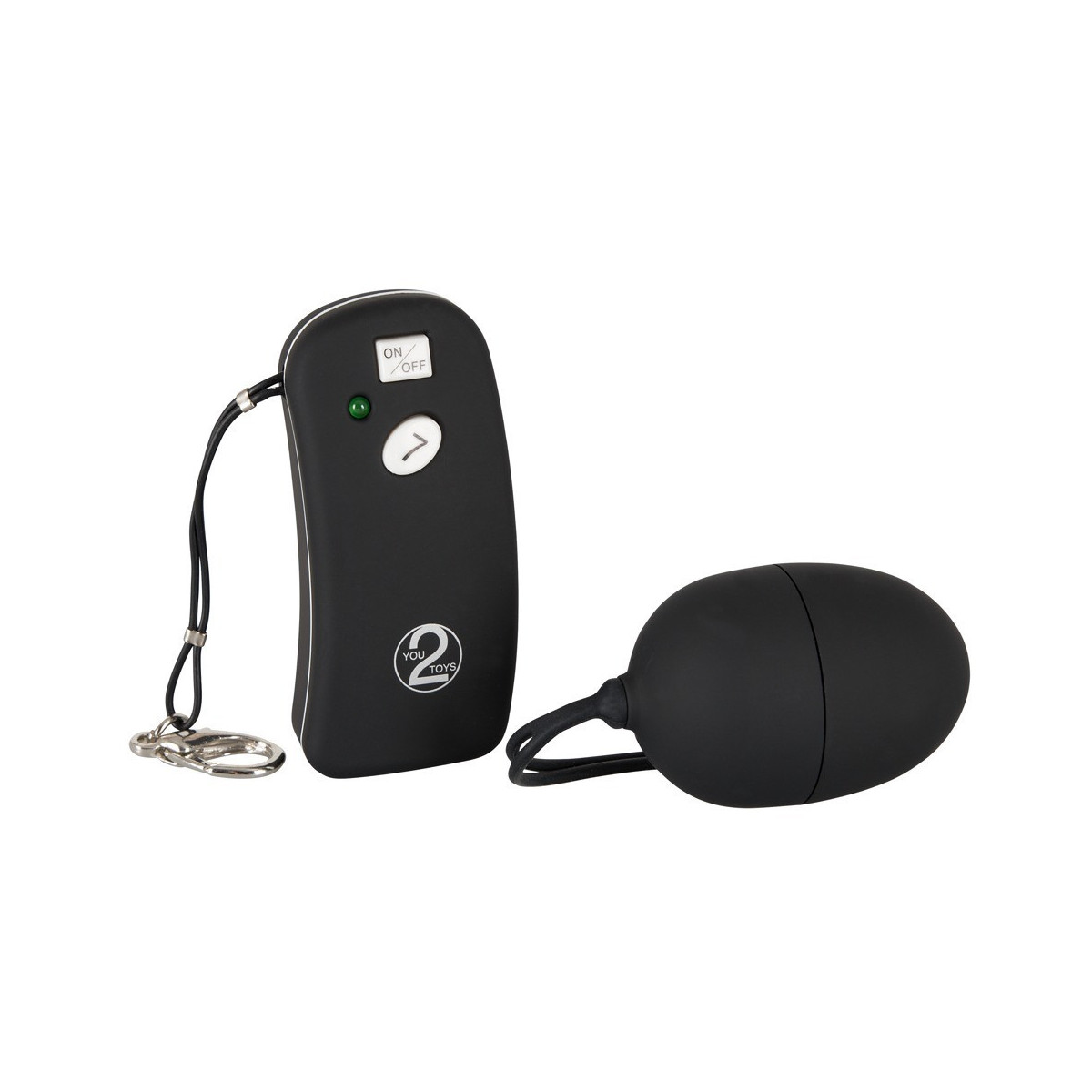 Uovo vibrante telecomandato, perché spesso avvengono cose inaspettate. Portata di diversi metri. Nero con 7 livelli di vibrazione. Ca. 5 cm di lunghezza, Ø 3,7 cm. Materiale: ABS. Incluse batterie.