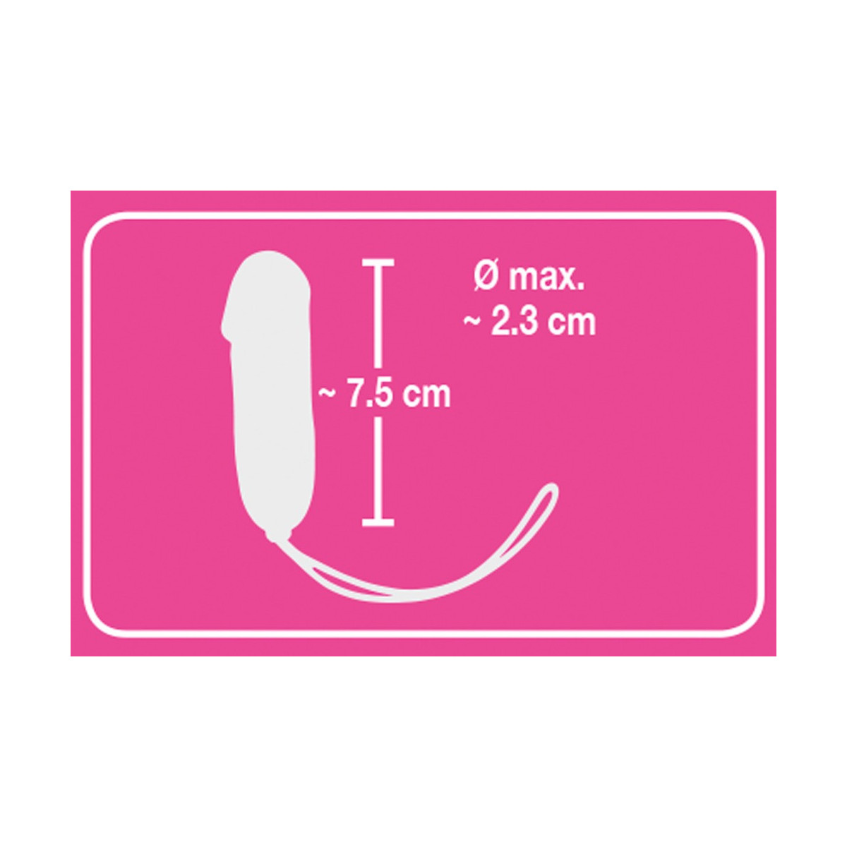 Lunghezza totale 7,5 cm, Ø 2,3 cm. Materiale: silicone, ABS. Le celle a bottone sono incluse.