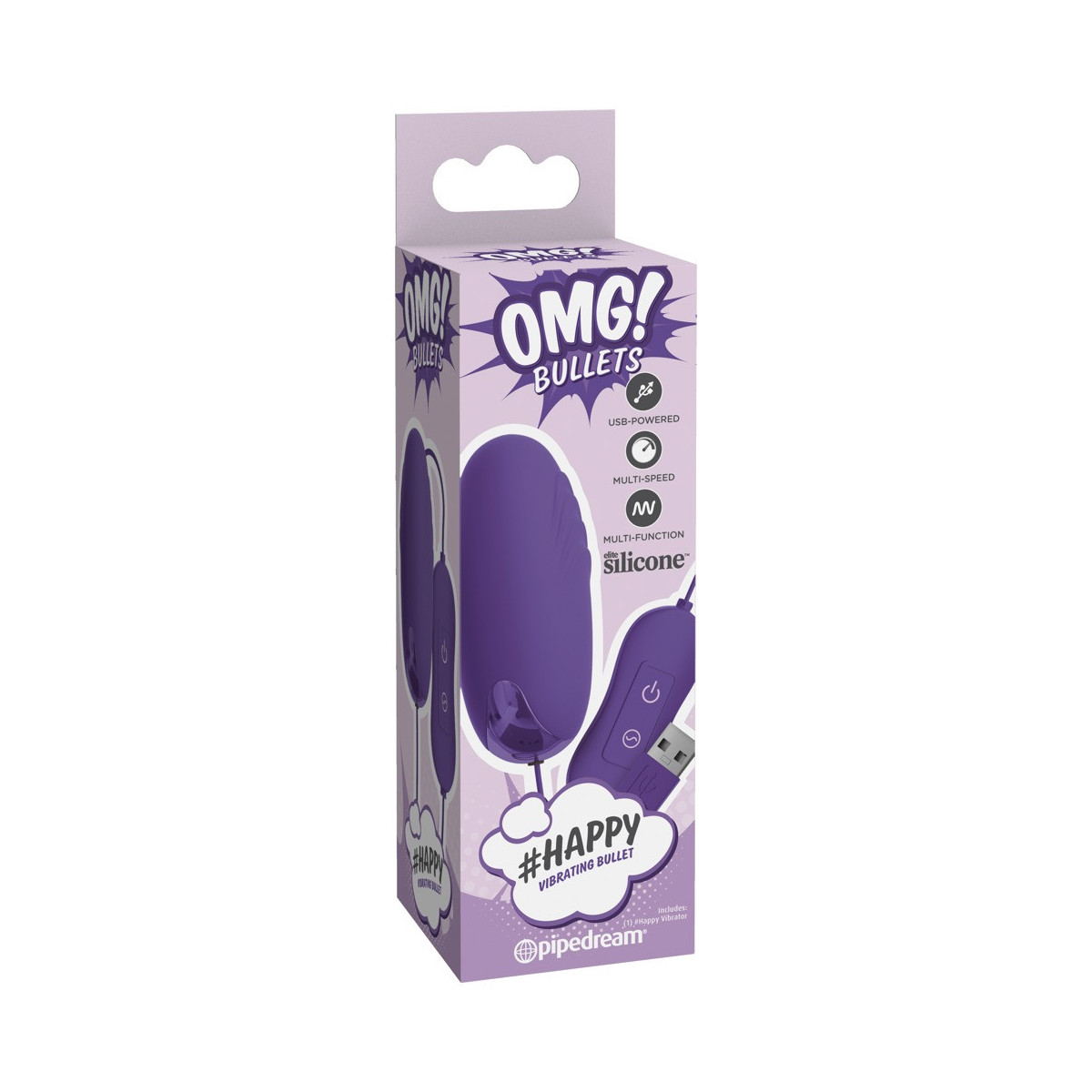OMG! Happy V Bullet - Vibratore, Uovo, 20 MOD, Silicone, Viola