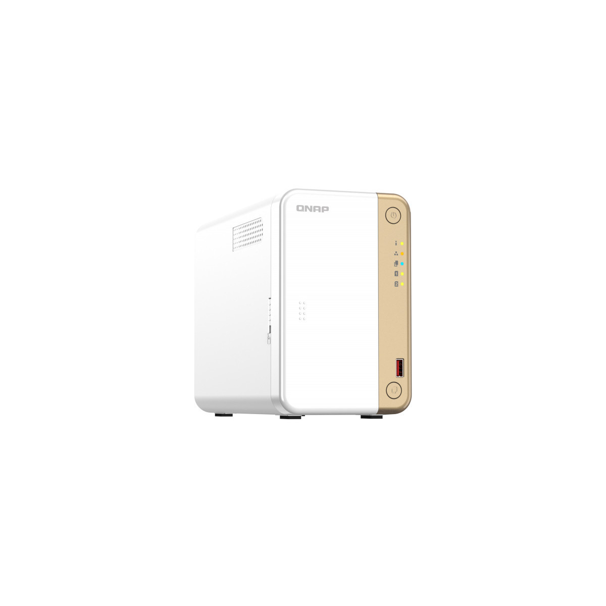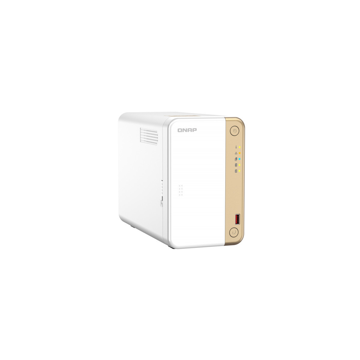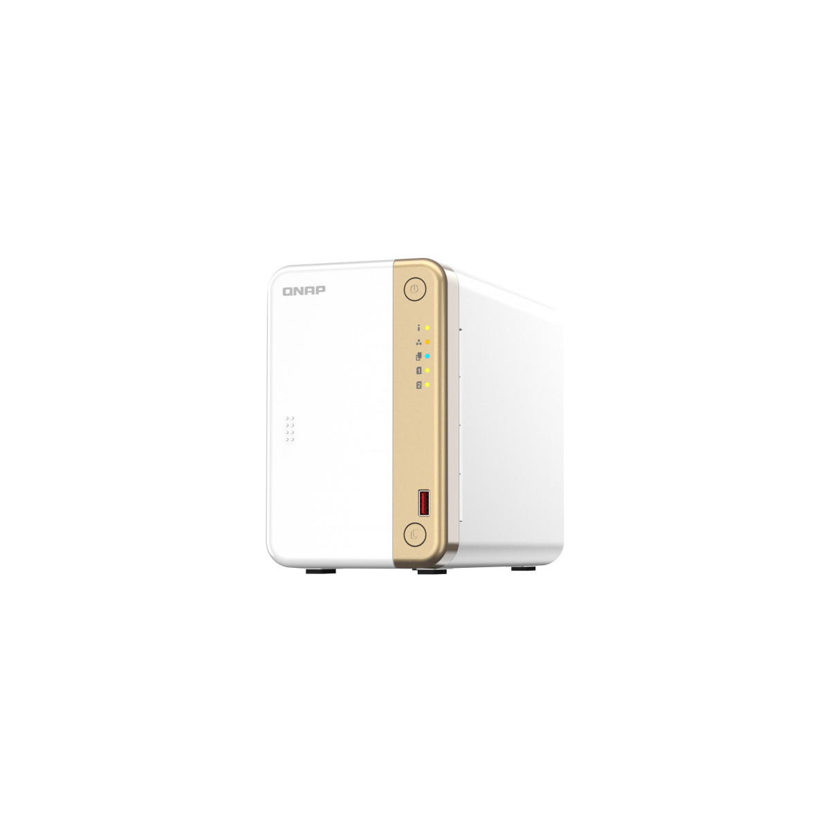 QNAP TS-262. Tipi di unità di archiviazione supportate: HDD & SSD, Interfacce dell'unità di archiviazione supportate: Serial ATA III, Dimensioni dei dispositivi di archivio supportati: 2.5,3.5". Famiglia processore: Intel® Celeron®, Produttore processore: Intel, Modello del processore: N4505. RAM installata: 4 GB, Massima RAM supportata: 4 GB, Memoria flash: 4000 MB. Velocità trasferimento Ethernet LAN: 10,100,1000,2500 Mbit/s, Protocolli di rete supportati: IPv4, IPv6. Tipo di case: Tower, Tipo di raffreddamento: Attivo, Colore del prodotto: Oro, Bianco