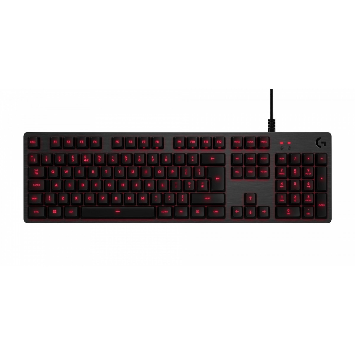 Logitech G413. Fattore di forma tastiera: Standard. Stile tastiera: Dritto. Tecnologia di connessione: Cablato, Interfaccia dispositivo: USB, Interruttore a chiave per tastiera: Interruttore a chiave meccanica, Struttura tastiera: QWERTY. Tipologia di retroilluminazione: LED. Lunghezza cavo: 1,8 m. Utilizzo raccomandato: Giocare. Colore del prodotto: Nero