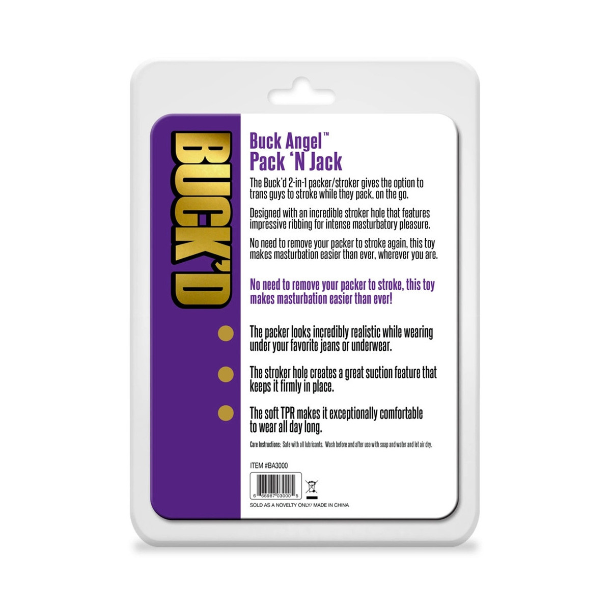 Il Buck'd 2-in-1 packer/stroker offre la possibilità ai ragazzi trans di accarezzare mentre fanno le valigie, in movimento. Progettato con un incredibile foro per lo stroker che presenta un'impressionante nervatura per un intenso piacere masturbatorio. Non c'è bisogno di rimuovere il tuo packer per accarezzare di nuovo, questo giocattolo rende la masturbazione più facile che mai, ovunque tu sia.