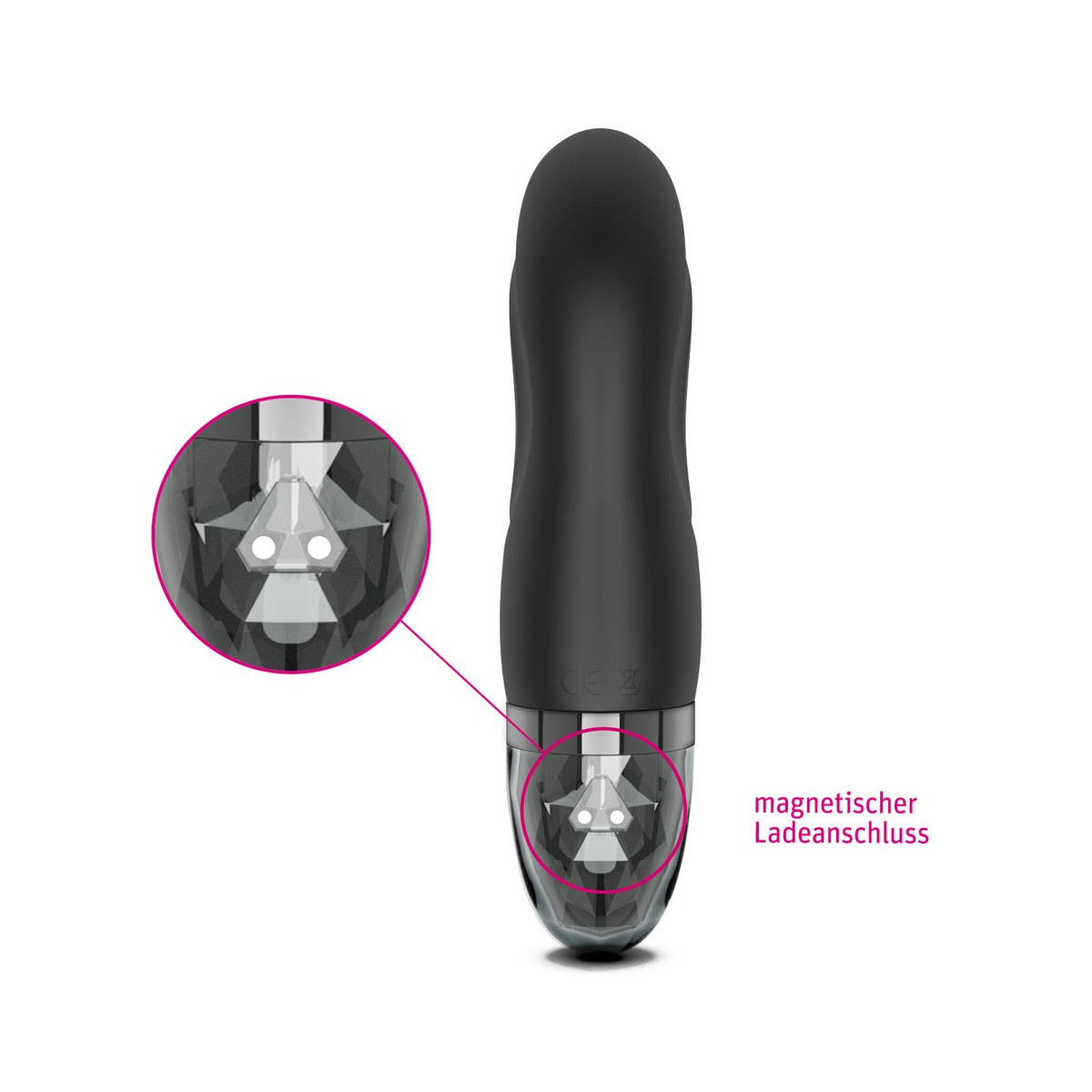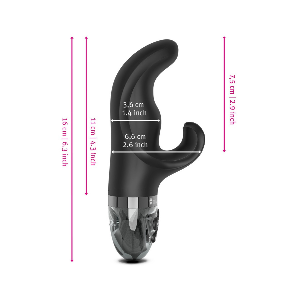 Maneggevole vibratore rabbit Hop Hop Bob E-Stim di Mystim con punta del punto G idealmente ricurva e stimolatore flessibile del clitoride. 8 modalità di vibrazione e 5 modalità E-voice offrono un'ampia varietà per la stimolazione simultanea interna ed esterna. Inoltre, come funzione molto speciale, un programma aggiuntivo di corrente di stimolazione per un allenamento perfetto dei muscoli del pavimento pelvico. Tutto può essere comodamente controllato direttamente sul giocattolo con la semplice pressione di un pulsante, separatamente o in combinazione.