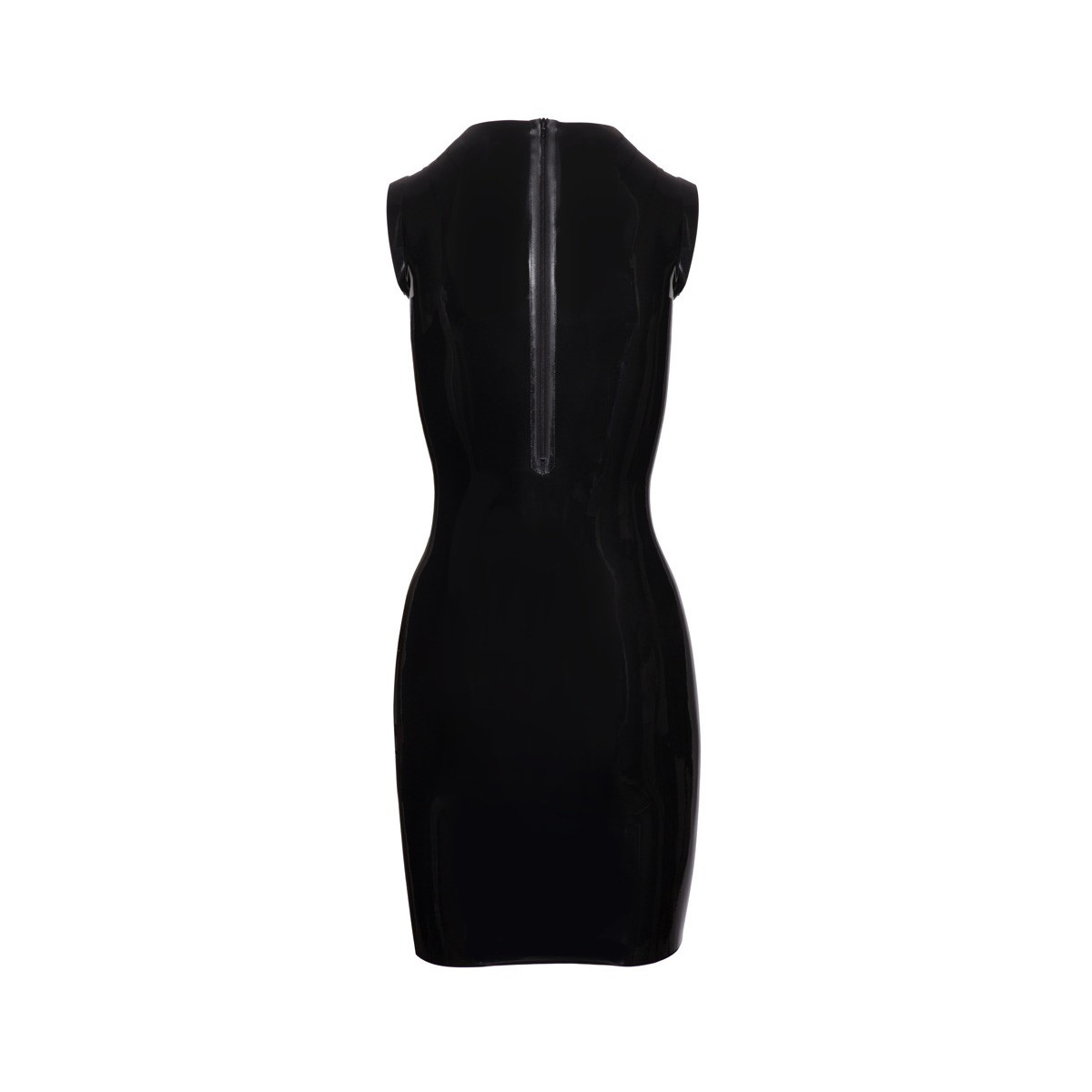 Mini abito senza maniche in lattice naturale con piccolo colletto rialzato. Si adatta bene e stretto come una seconda pelle e imposta perfettamente le curve mozzafiato nella scena fetish! Nella parte posteriore con cerniera per un facile on e off. Il miniabito è immerso su forma piatta e fa con uno spessore di lattice di 0,4 mm ogni movimento.