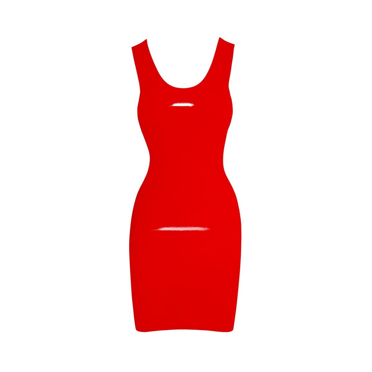 Abito semplice e bello in lattice naturale rosso brillante senza maniche e con una generosa scollatura rotonda. Si aggrappa a pelle alle curve mozzafiato e le mette con effetto segnale eccitante in scena. Il mini abito è immerso su forma piatta e fa con uno spessore di lattice di 0,4 mm ogni movimento.