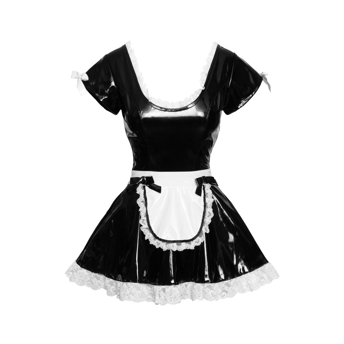 Black Level Vinyl Maid's - Miniabito da Governante, Nero Lucido e Bianco, Taglia XL