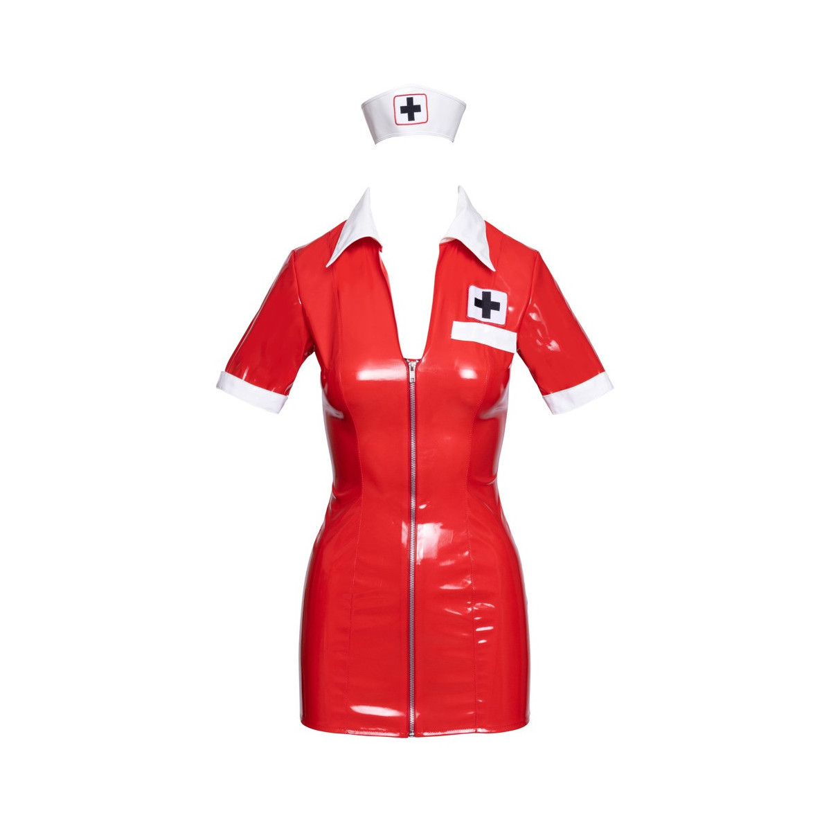 Black Level Vinyl Nurse R - Miniabito da Infermiera, Rosso Lucido, Taglia M