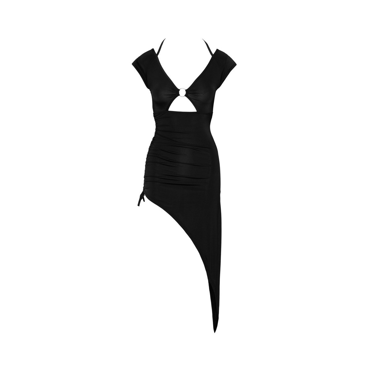 Abito lungo di Cottelli PARTY in un taglio aderente accentuante con piccole maniche. Scollo mozzafiato sul davanti - solo un anello decorativo tiene tutto insieme meravigliosamente. L'halterneck può essere legato al collo. La gonna dal taglio asimmetrico è raccolta sul lato più corto e può ancora essere regolata individualmente in altezza. La qualità morbida ed elastica lo rende molto comodo da indossare.