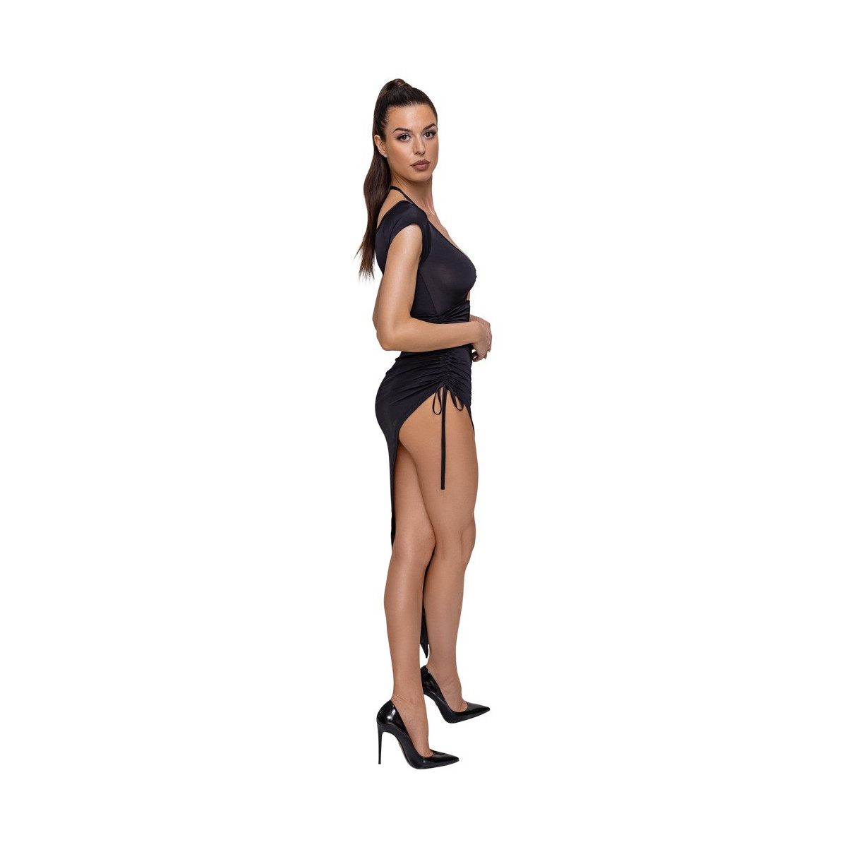 Abito lungo di Cottelli PARTY in un taglio aderente accentuante con piccole maniche. Scollo mozzafiato sul davanti - solo un anello decorativo tiene tutto insieme meravigliosamente. L'halterneck può essere legato al collo. La gonna dal taglio asimmetrico è raccolta sul lato più corto e può ancora essere regolata individualmente in altezza. La qualità morbida ed elastica lo rende molto comodo da indossare.