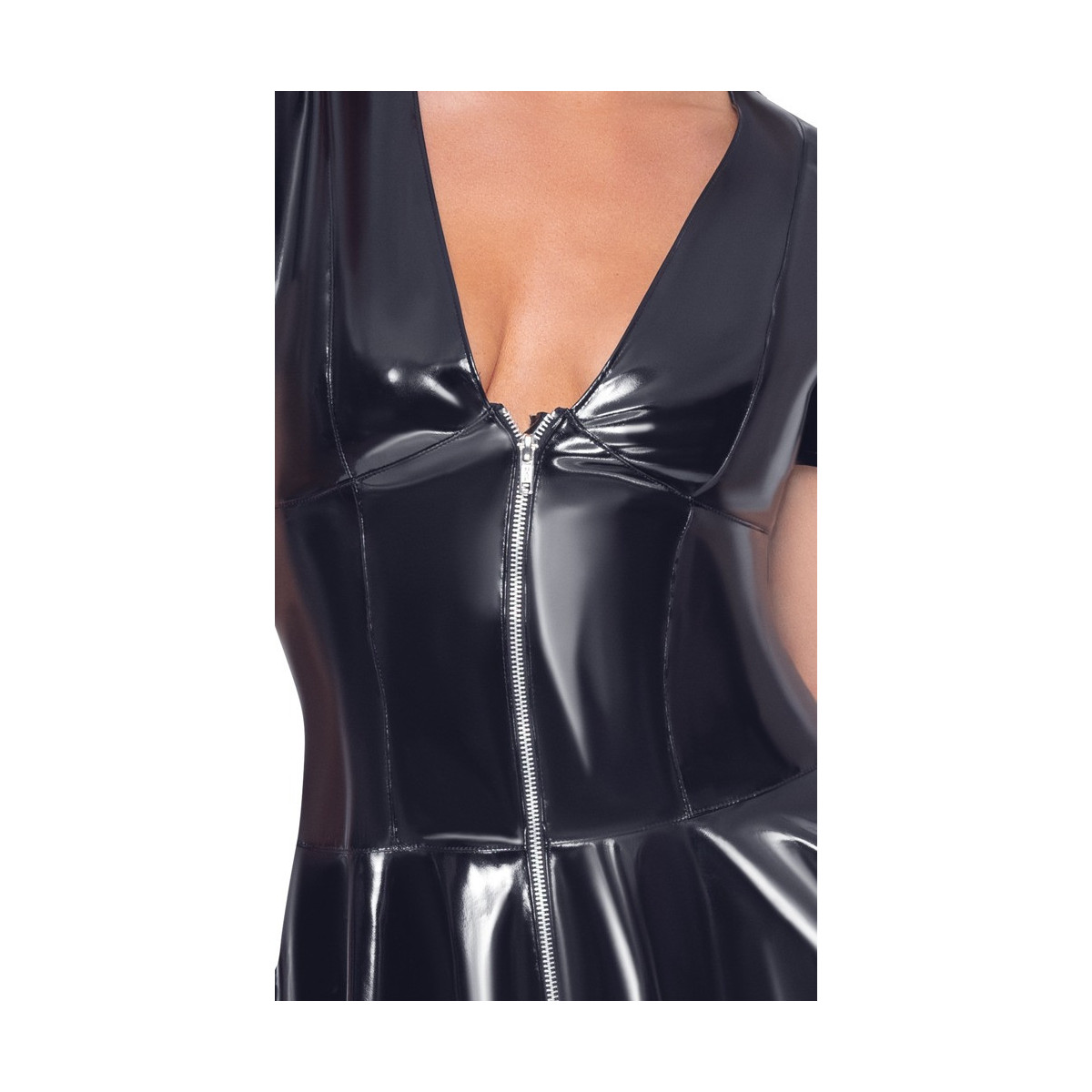 Black Level Vinyl Matrix - Miniabito Nero Lucido con Zip, Taglia XL