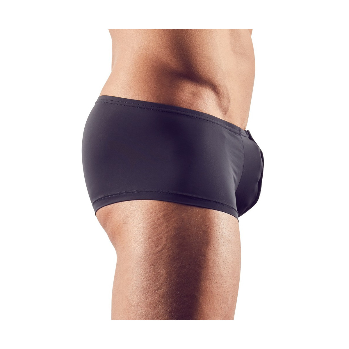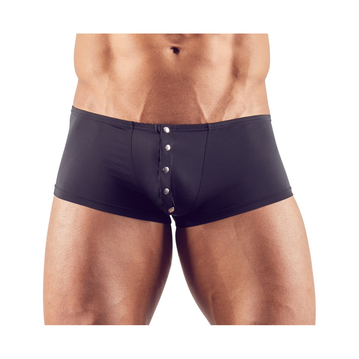 Sottolineate la vostra mascolinità con questi pantaloni elasticizzati leggermente trasparenti, con chiusura a scatto color argento e polsino bordato. Nero. 85% poliammide, 15% elastan.