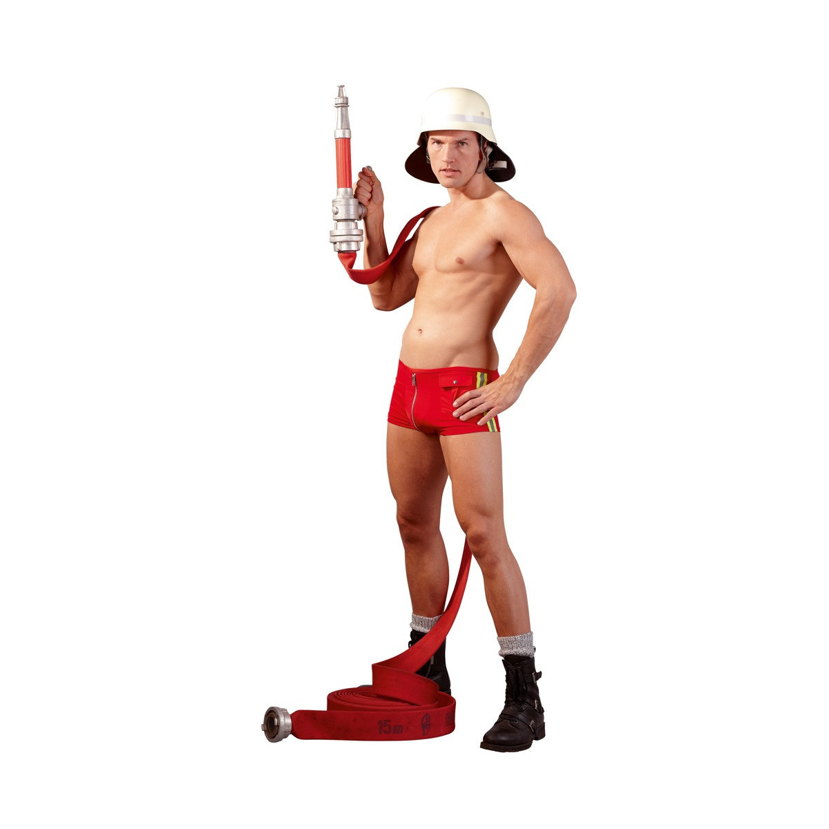 Pantaloni rosso vivo in look da pompiere per un gioco di ruolo fantasioso. Con strisce riflettenti, tasca decorativa e cerniera intelligente sul davanti. Inoltre, la funzione swell fornisce un impressionante rigonfiamento anteriore.