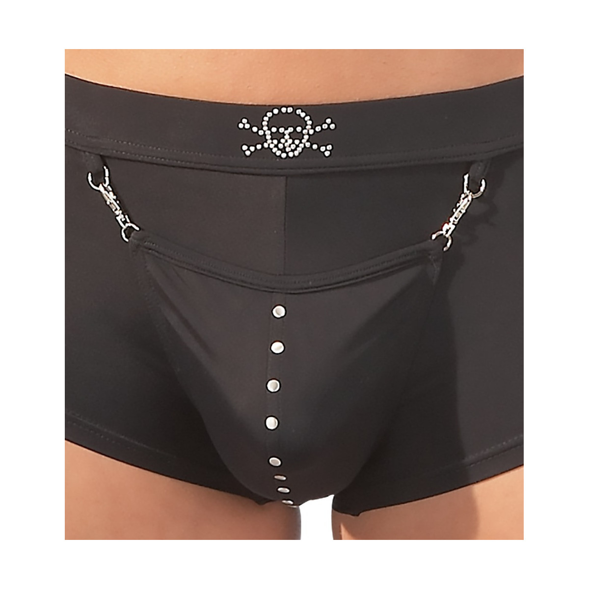 Pantaloni da pirata aderenti alla figura con marsupio e moschettone. Con funzione swell per un rigonfiamento anteriore impressionante e autentico teschio rivettato sulla cintura. Perfetto per avventure selvagge e giochi di ruolo hot.