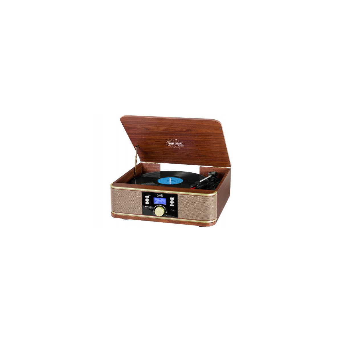 Il Giradischi Stereo Trevi TT 1042 DAB è dotato di altoparlanti stereo ad alte prestazioni incorporati nel mobile in legno con coperchio richiudibile ed è alimentato a corrente con alimentatore 110-240V~50/60Hz