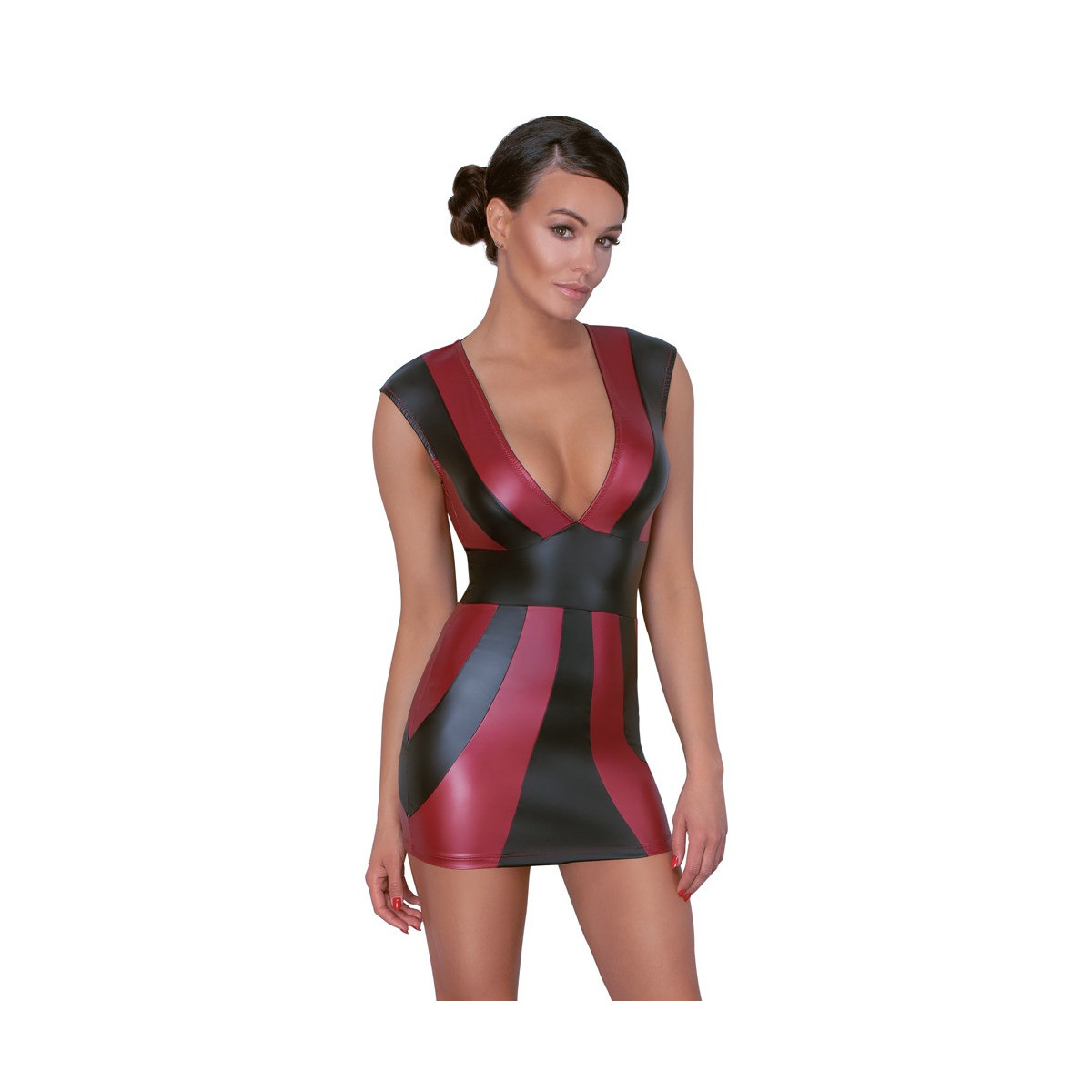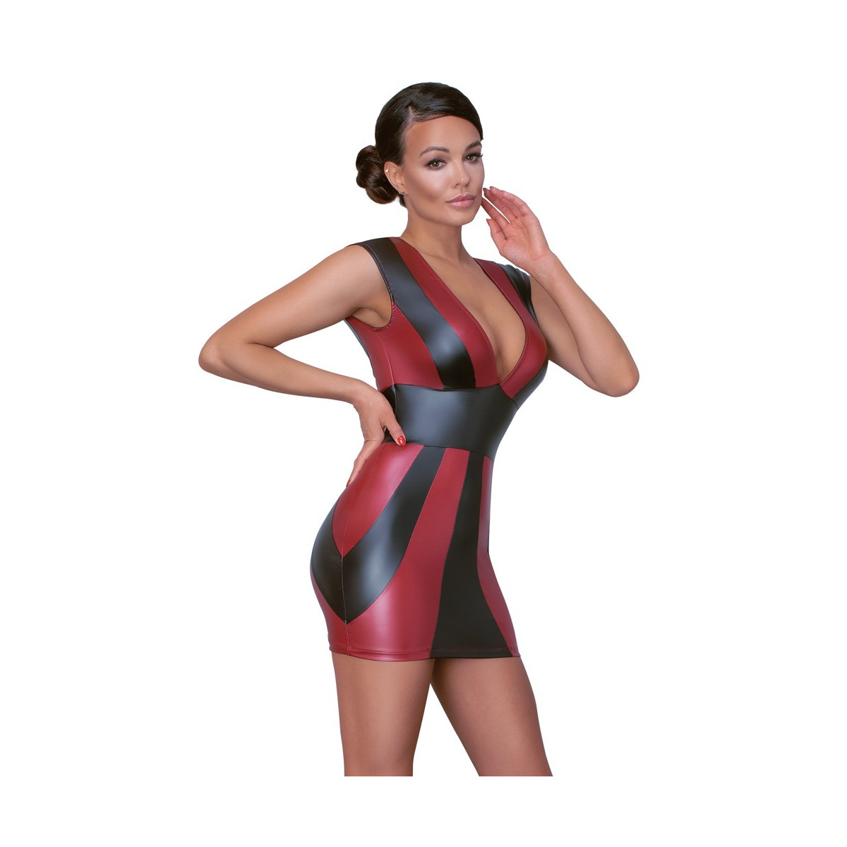Abito corto in vita di Cottelli PARTY in look opaco rosso e nero con profonda scollatura davanti e dietro. Al collo, una stretta barra elastica con chiusura a clip assicura una presa sicura e una vestibilità ottimale. Morbido e altamente elastico per un elevato comfort di vestibilità.