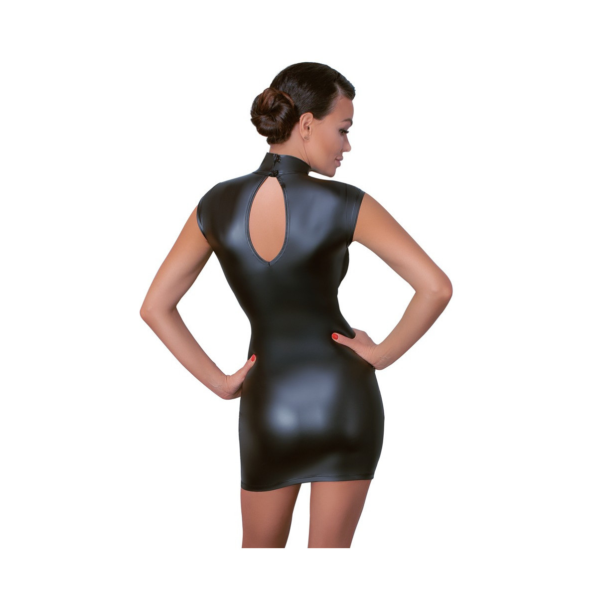 Abito corto in vita di Cottelli PARTY in look nero opaco con inserti in powernet trasparente sul davanti. Colletto in piedi con 2 bottoni nel collo, grande ritaglio ovale nella parte posteriore in basso. Morbido e altamente elastico per un elevato comfort di vestibilità.