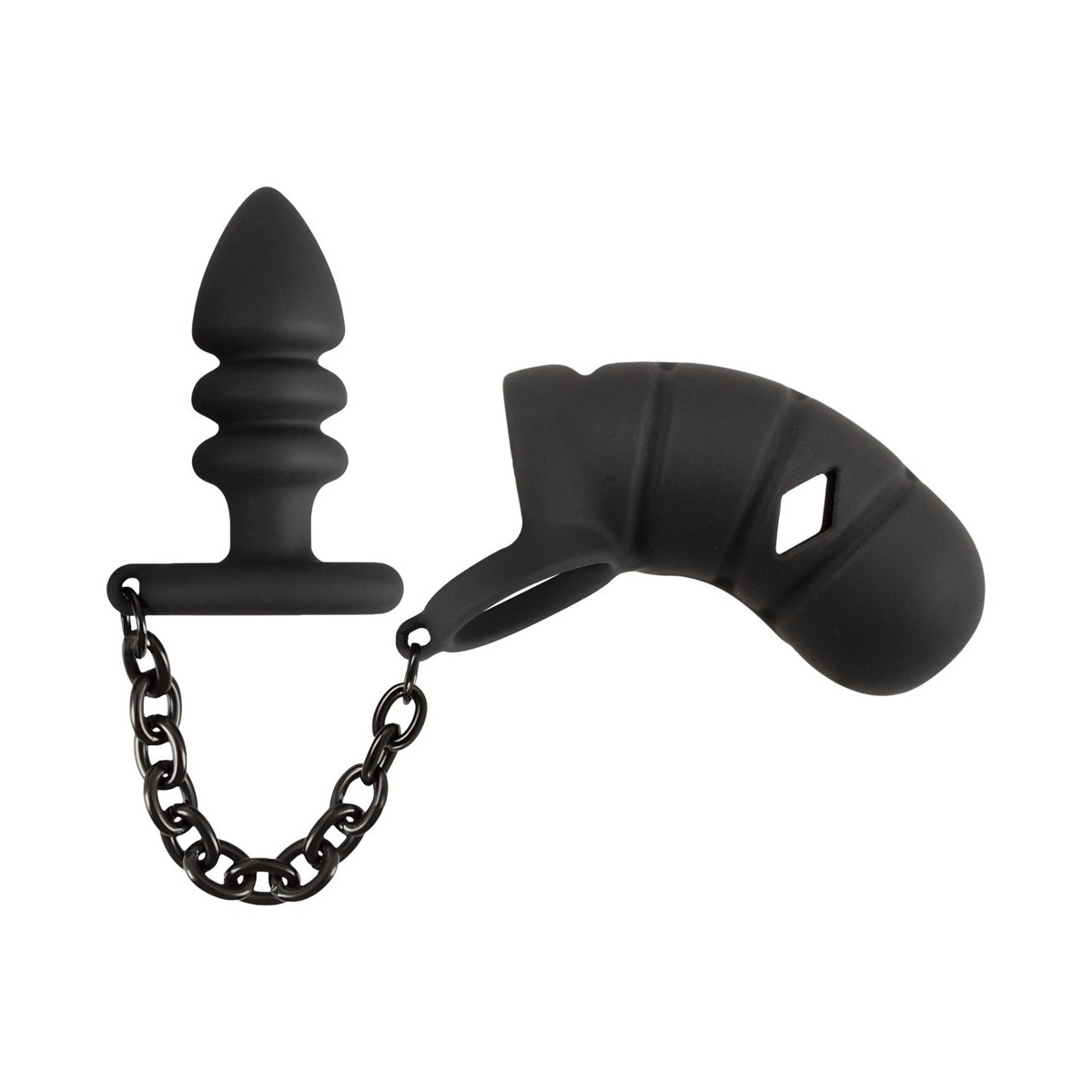 Black Velvets Cock Cage With Butt - Plug Anale con Guaina per Pene