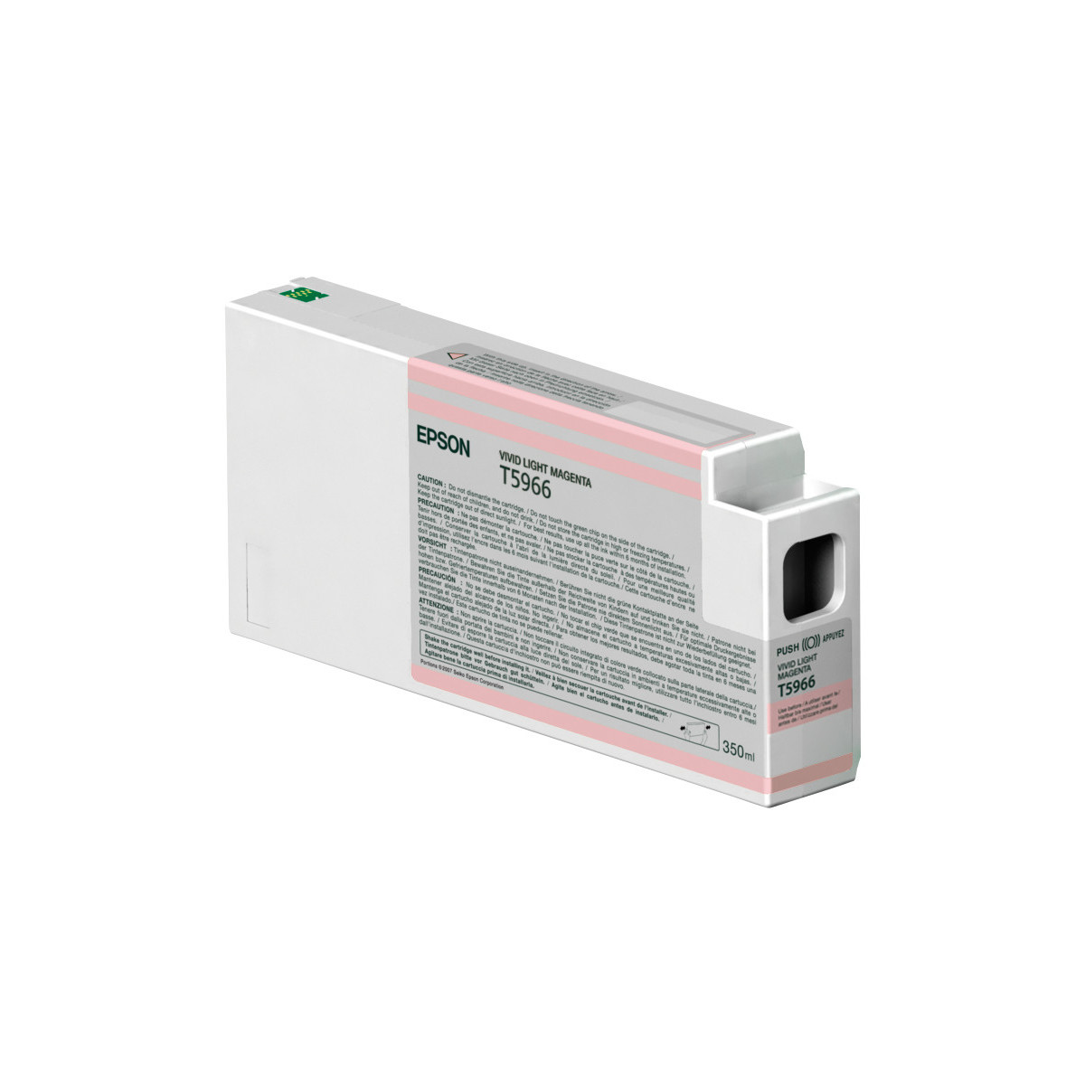 Epson Tanica Vivid Magenta-chiaro. Tipo: Originale, Tipo di inchiostro: Inchiostro a base di pigmento, Colori di stampa: Magenta chiaro vivido. Larghezza imballo: 43 mm, Profondità imballo: 245 mm, Altezza imballo: 120 mm. Ampiezza del pallet: 80 cm, Lunghezza del pallet: 120 cm, Altezza del pallet: 30 cm