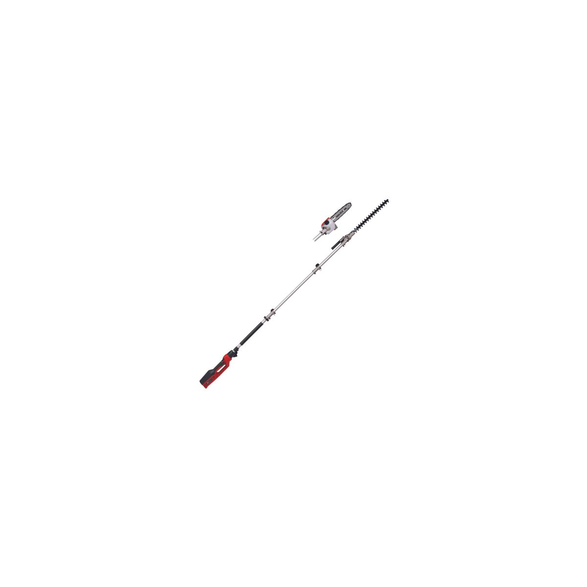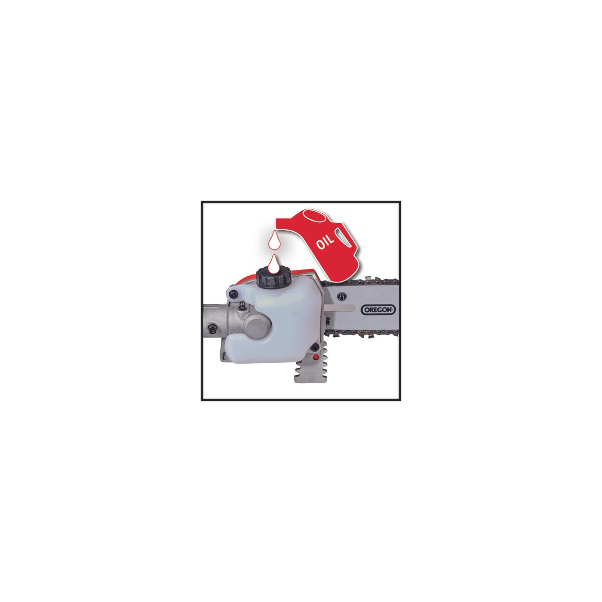 Il tagliasiepi/sega elettrica ad asta da 900 watt GC-HC 90/2046 T è un pratico dispositivo 2 in 1 per il taglio di siepi alte e rami. Grazie ai suoi due accessori di taglio, è un tagliasiepi telescopico e un potatore in uno. Con l'aiuto dell'accessorio tagliasiepi lungo 46 cm, siepi, cespugli e arbusti con una lunghezza di taglio di 41,2 cm possono essere tagliati in un batter d'occhio. Grazie all'ampia distanza tra i denti di 20 mm, anche i rami più spessi non sono un problema per i coltelli tagliati al laser e affilati al diamante. La barra per motosega OREGON lunga 20 cm taglia anche i rami più spessi con una lunghezza di taglio di 18 cm. L'elevata velocità della catena fino a 11 m/s consente un taglio potente. La catena è sempre lubrificata dalla lubrificazione automatica della catena e dal serbatoio dell'olio da 100 ml. Il tagliasiepi/sega telescopico è lungo 1,97 m. Progettato come un albero diviso, l'estensione fornita può essere montata per una lunghezza totale del dispositivo di 2,60 m per raggiungere rami e ramoscelli ancora più alti. Per una lunga durata, il tagliasiepi o potatore telescopico elettrico è dotato di un robusto ingranaggio in metallo. Per lavorare in modo ottimale da diverse angolazioni, l'accessorio tagliasiepi può essere inclinato 11 volte. Inoltre, l'impugnatura posteriore può essere ruotata per tagli verticali e orizzontali. Le superfici soft grip e la tracolla regolabile con sgancio rapido garantiscono una maneggevolezza confortevole. I due dispositivi di taglio vengono conservati e trasportati in modo sicuro in robuste valigie incluse nella consegna. per raggiungere rami e ramoscelli ancora più alti. Per una lunga durata, il tagliasiepi o potatore telescopico elettrico è dotato di un robusto ingranaggio in metallo. Per lavorare in modo ottimale da diverse angolazioni, l'accessorio tagliasiepi può essere inclinato 11 volte. Inoltre, l'impugnatura posteriore può essere ruotata per tagli verticali e orizzontali. Le superfici soft grip e la tracolla regolabile con sgancio rapido garantiscono una maneggevolezza confortevole. I due dispositivi di taglio vengono conservati e trasportati in modo sicuro in robuste valigie incluse nella consegna. per raggiungere rami e ramoscelli ancora più alti. Per una lunga durata, il tagliasiepi o potatore telescopico elettrico è dotato di un robusto ingranaggio in metallo. Per lavorare in modo ottimale da diverse angolazioni, l'accessorio tagliasiepi può essere inclinato 11 volte. Inoltre, l'impugnatura posteriore può essere ruotata per tagli verticali e orizzontali. Le superfici soft grip e la tracolla regolabile con sgancio rapido garantiscono una maneggevolezza confortevole. I due dispositivi di taglio vengono conservati e trasportati in modo sicuro in robuste valigie incluse nella consegna. l'accessorio tagliasiepi può essere inclinato 11 volte. Inoltre, l'impugnatura posteriore può essere ruotata per tagli verticali e orizzontali. Le superfici soft grip e la tracolla regolabile con sgancio rapido garantiscono una maneggevolezza confortevole. I due dispositivi di taglio vengono conservati e trasportati in modo sicuro in robuste valigie incluse nella consegna. l'accessorio tagliasiepi può essere inclinato 11 volte. Inoltre, l'impugnatura posteriore può essere ruotata per tagli verticali e orizzontali. Le superfici soft grip e la tracolla regolabile con sgancio rapido garantiscono una maneggevolezza confortevole. I due dispositivi di taglio vengono conservati e trasportati in modo sicuro in robuste valigie incluse nella consegna.